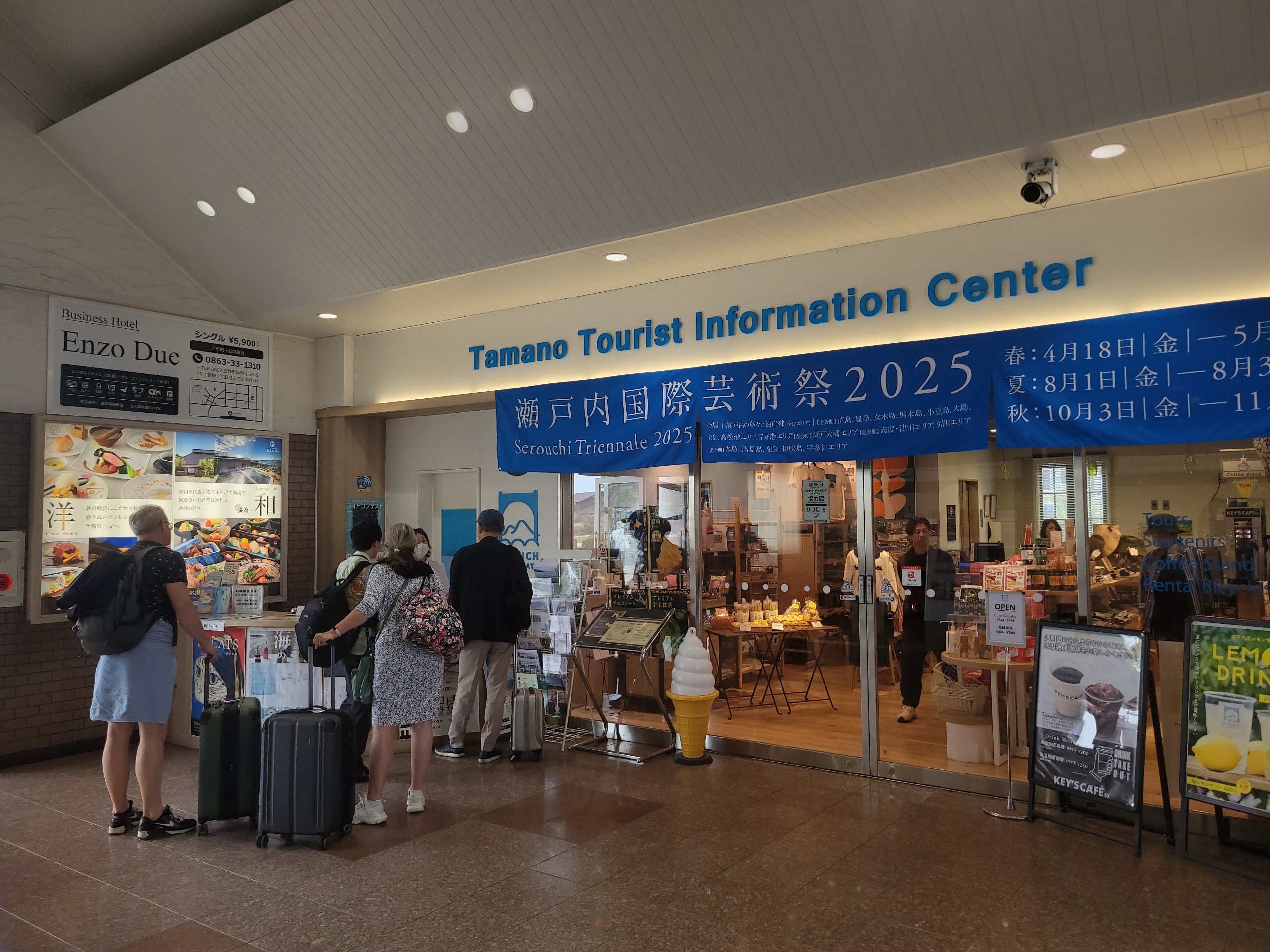 終点、宇野駅に到着。インバウンドの割合がかなり高いようで、大きなスーツケースを引いた欧米人の姿が目立つ。瀬戸内国際芸術祭の開催期間中に来なくてよかった思う。宇野駅に来ているということは、これから直島へ向かうのだろう。