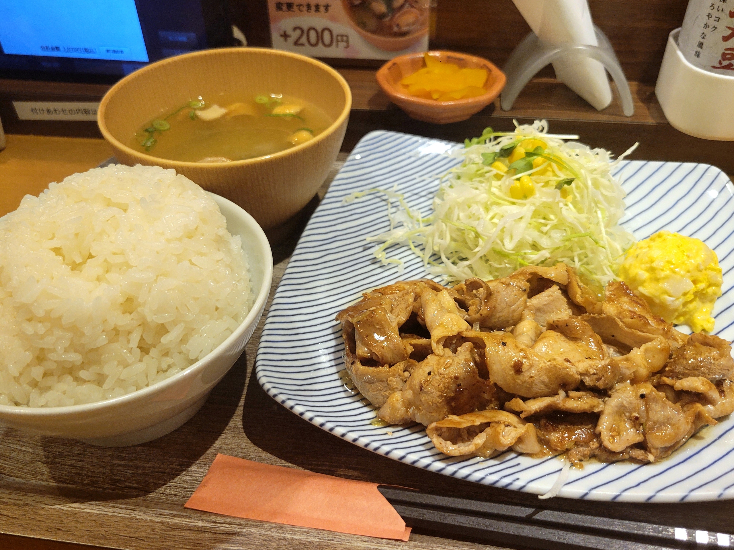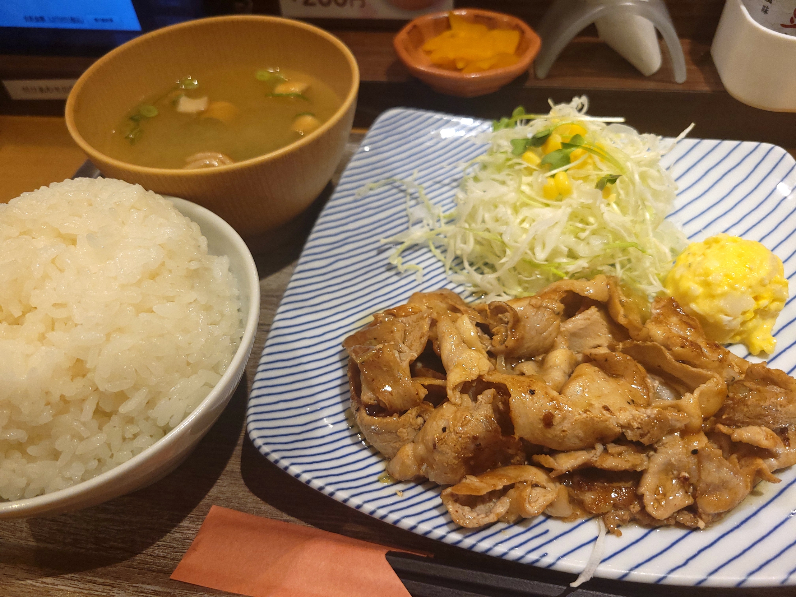 ごま油が香る塩だれ味は食欲爆増させる。ごはんが固めに炊かれていて美味しくて、無我夢中で食べた。しかしごはんが予想より大盛りだったのに、豚肉は薄くてボリューム感がもうちょっと欲しかったかな…。ご飯だけが残りそうで心配でした。