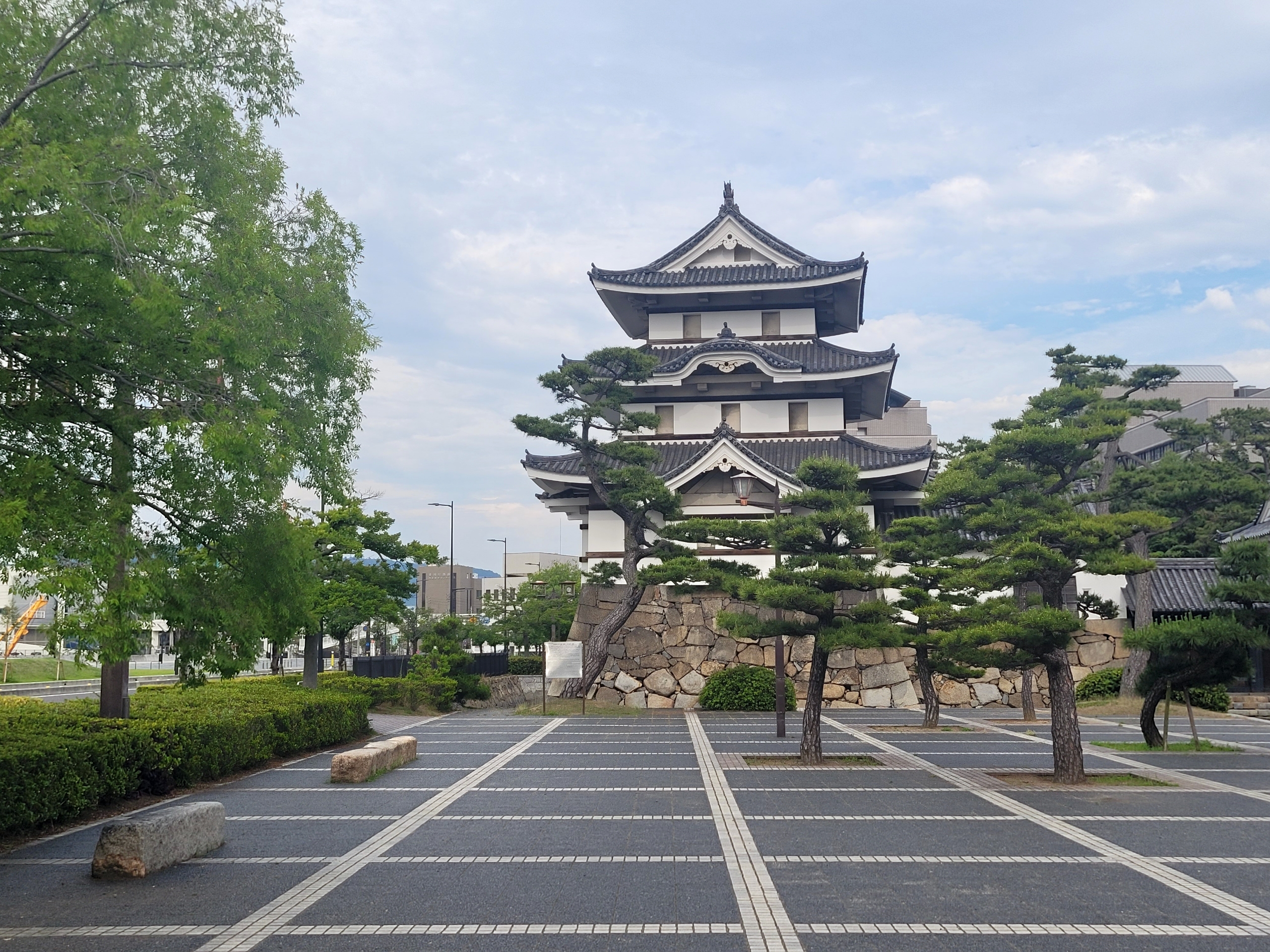瀬戸内海に面して築かれた城で、海水を引き入れた堀を持つ「水城」として知られている。