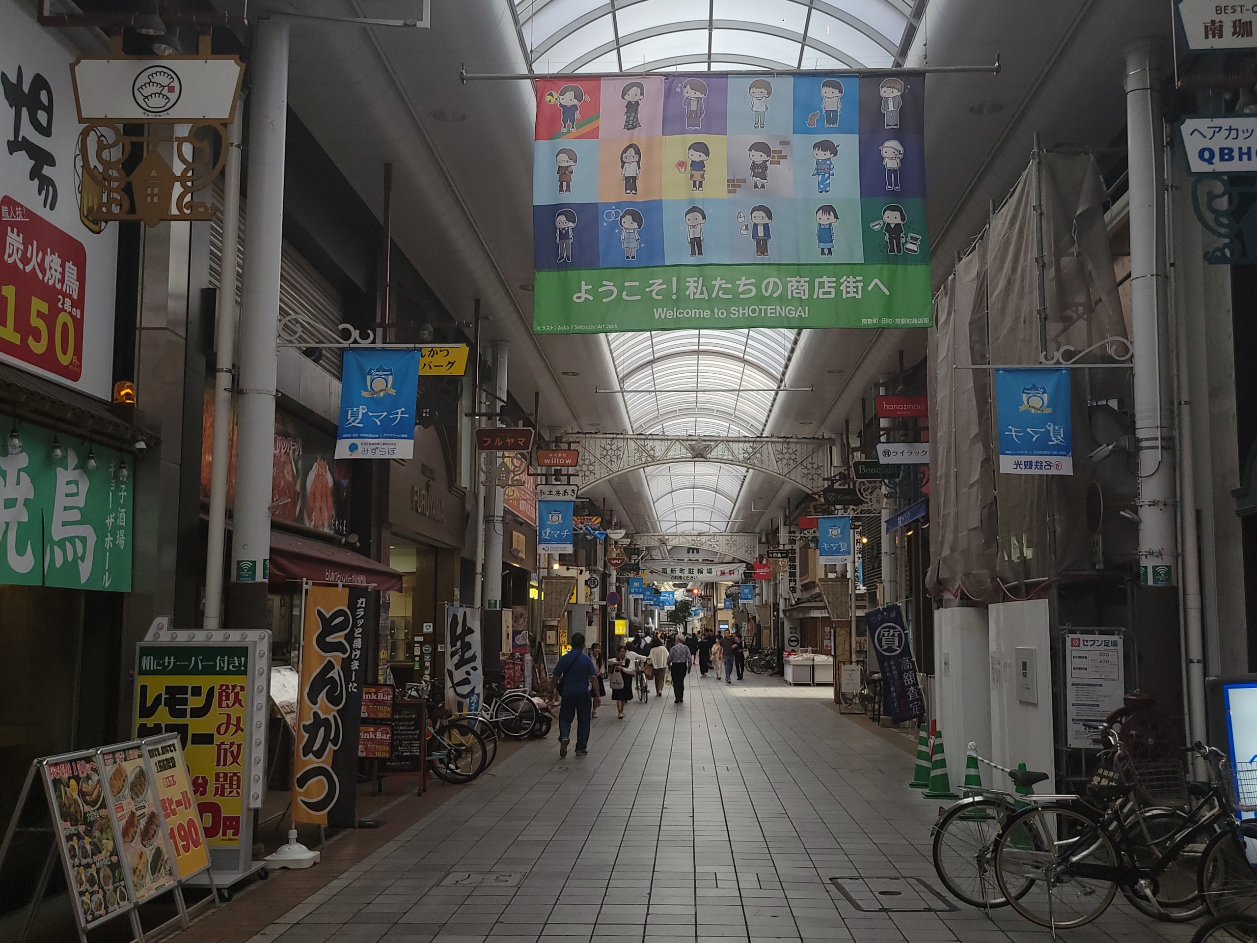 商店街というと、昭和に栄え、近年は郊外のスーパーマーケットや大型ショッピングモールに客を奪われ、衰退していく…。そんなイメージがある。実際に、そういう場所も多いと思う。ここ高松の商店街もかつては似たような状況だったらしいが、最近は盛り返してきているという。それなら、一度歩いてみたくなった。屋島に登るはずだった体力を使って、この長い商店街を端から端まで歩いてみることにした。