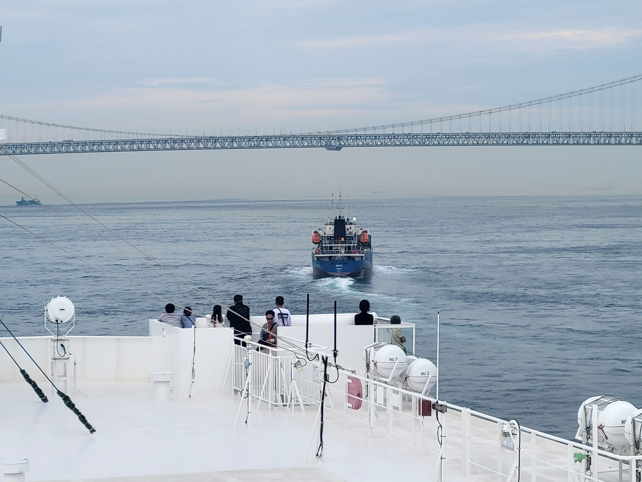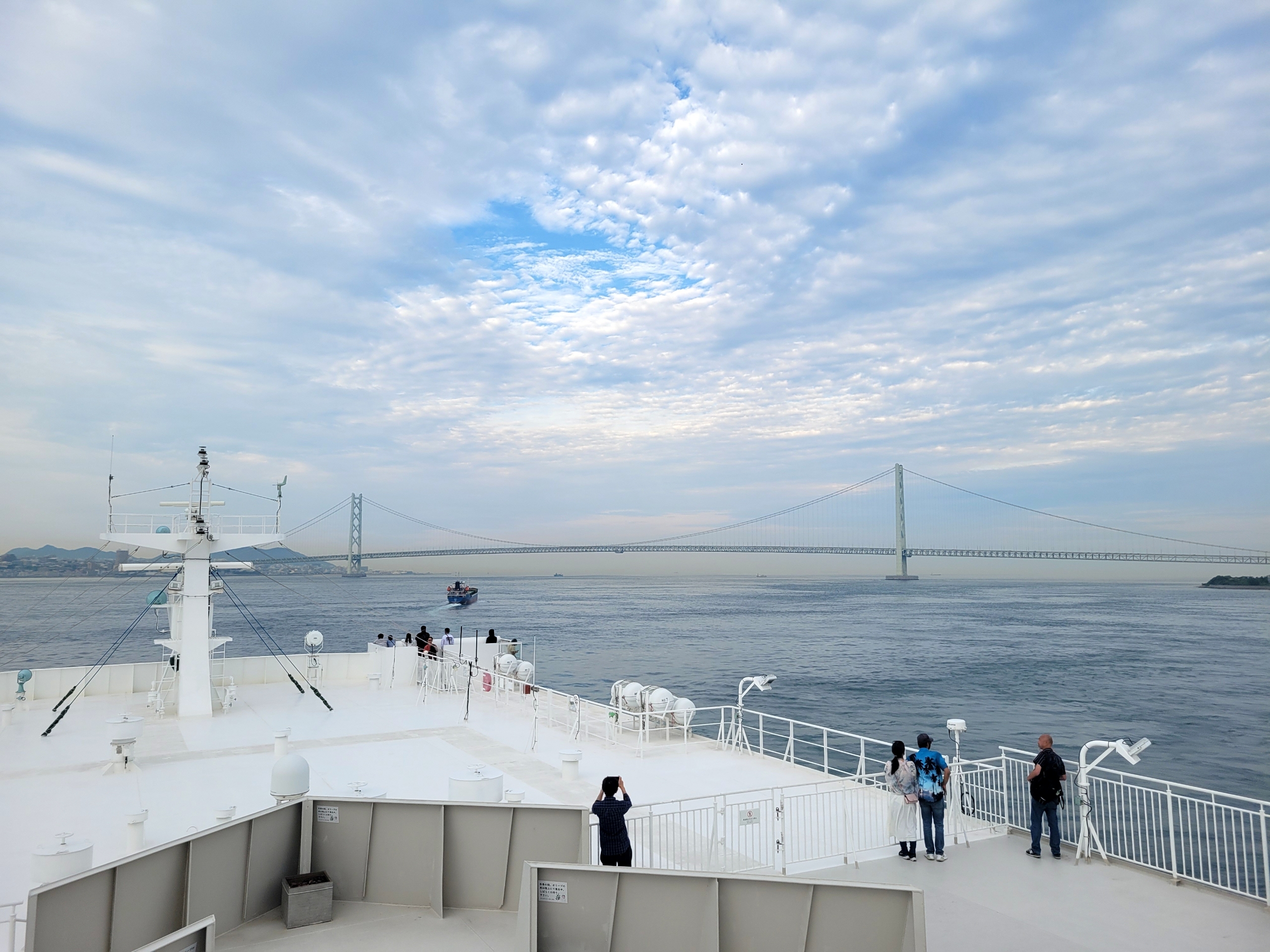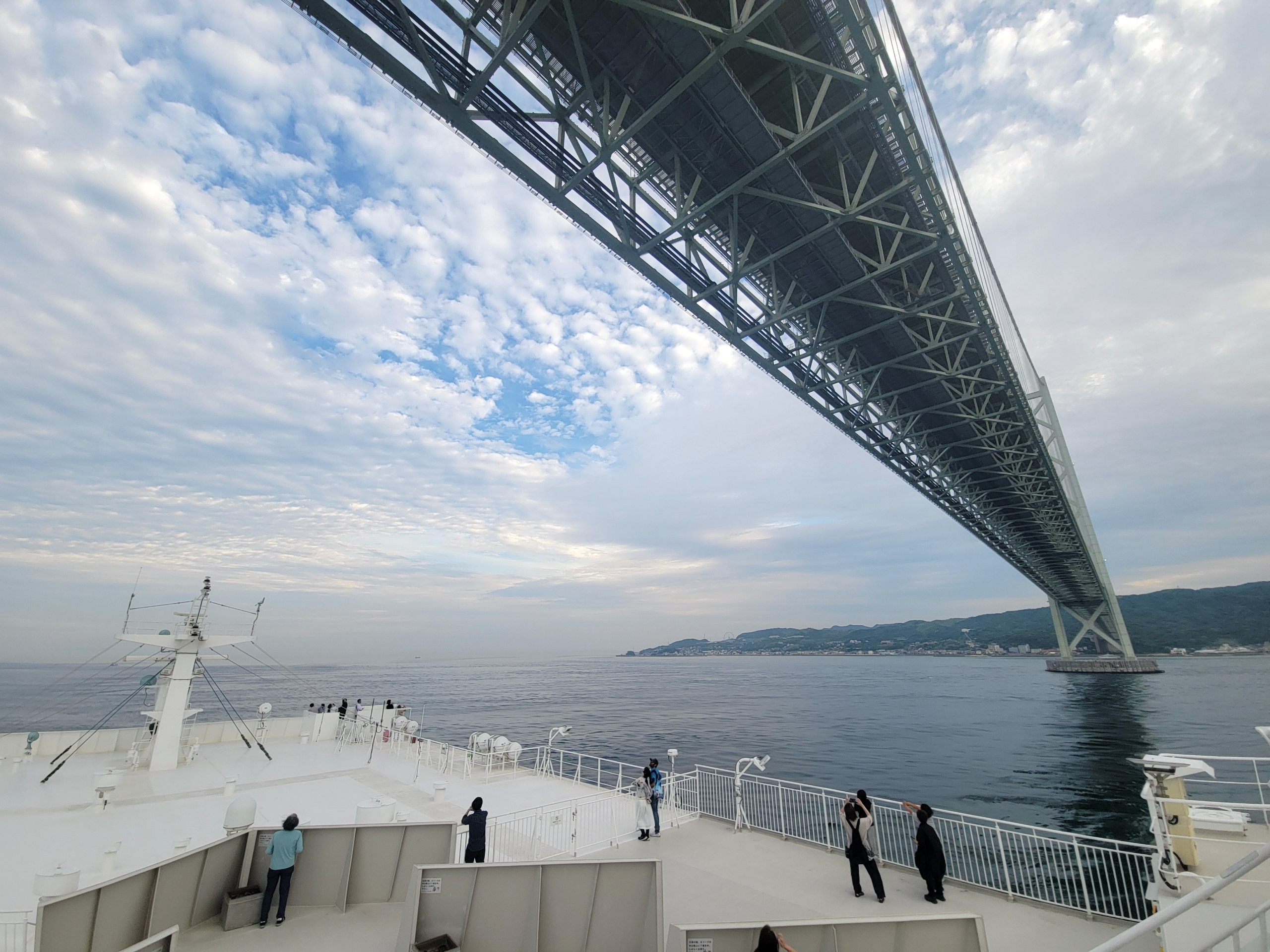 明石海峡大橋が近づいてくると船内アナウンスがあり、徐々に甲板に人が集まってきました。