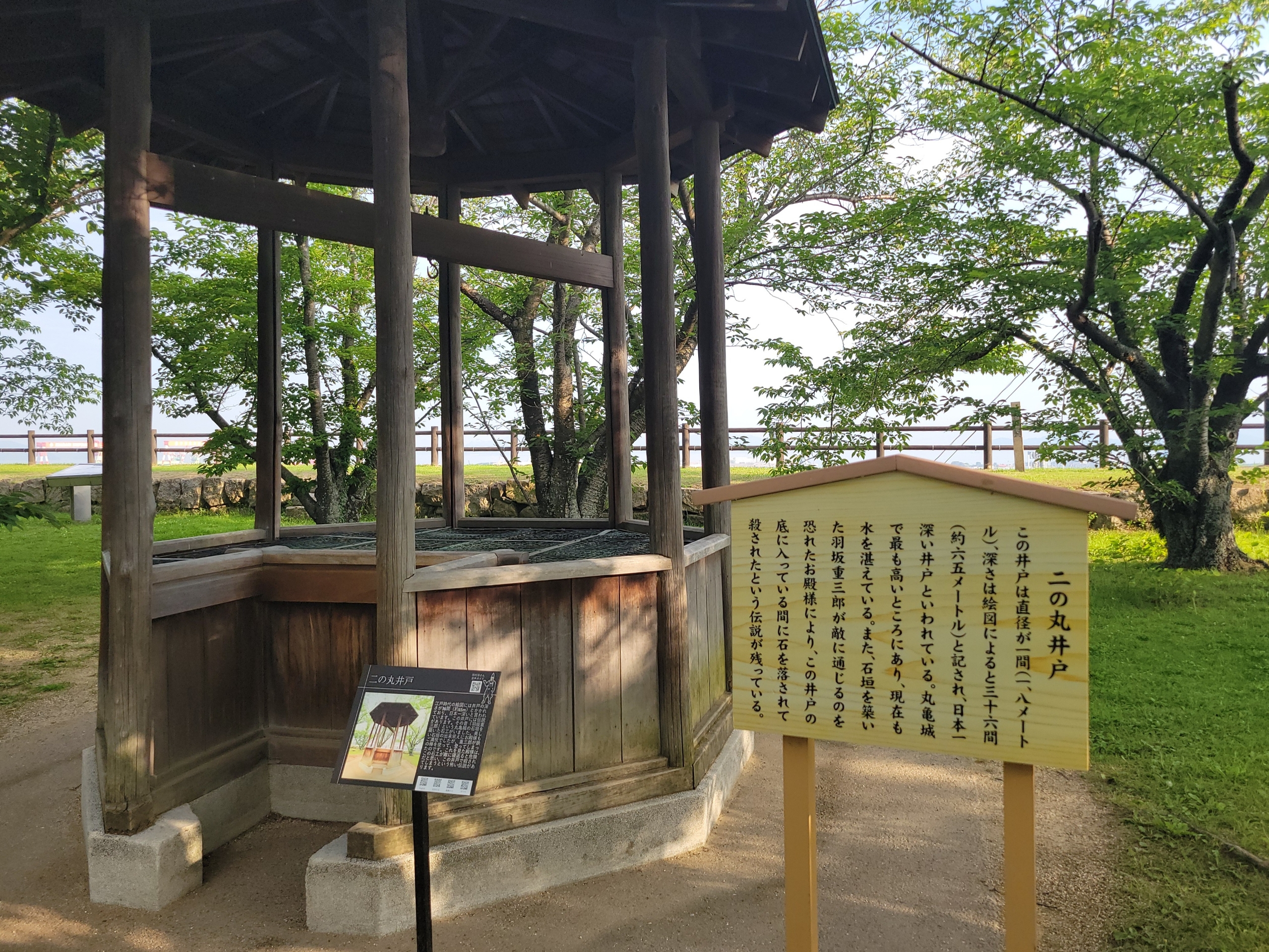 二の丸井戸。丸亀城3つめの日本一です。深さ65mあり日本一深い井戸らしいです。落ちたらシャレにならん。