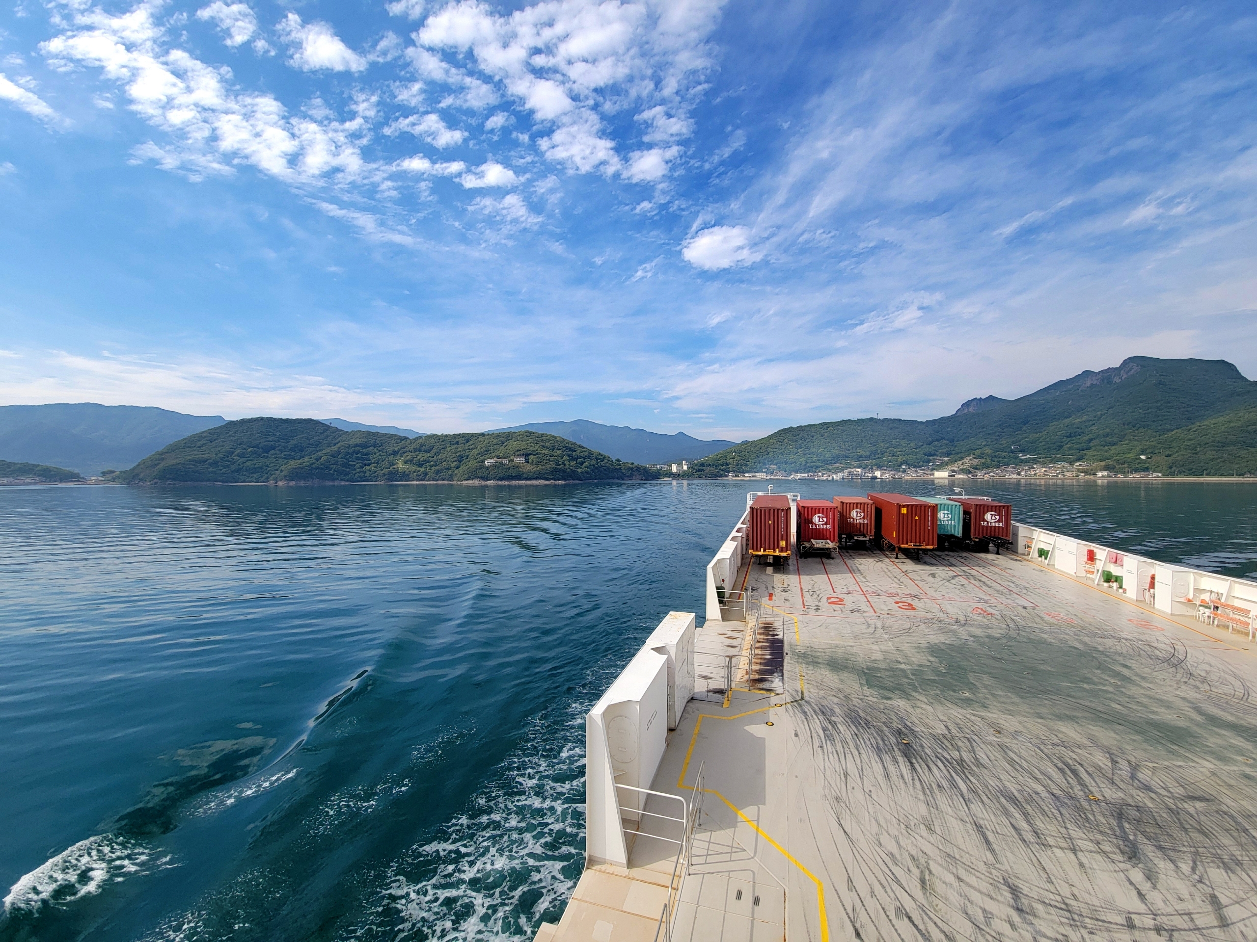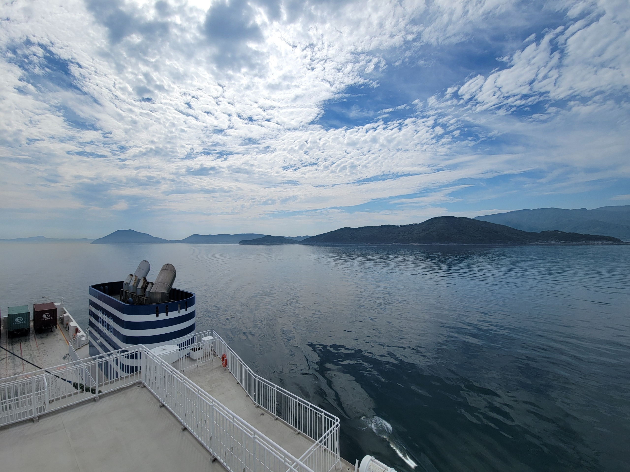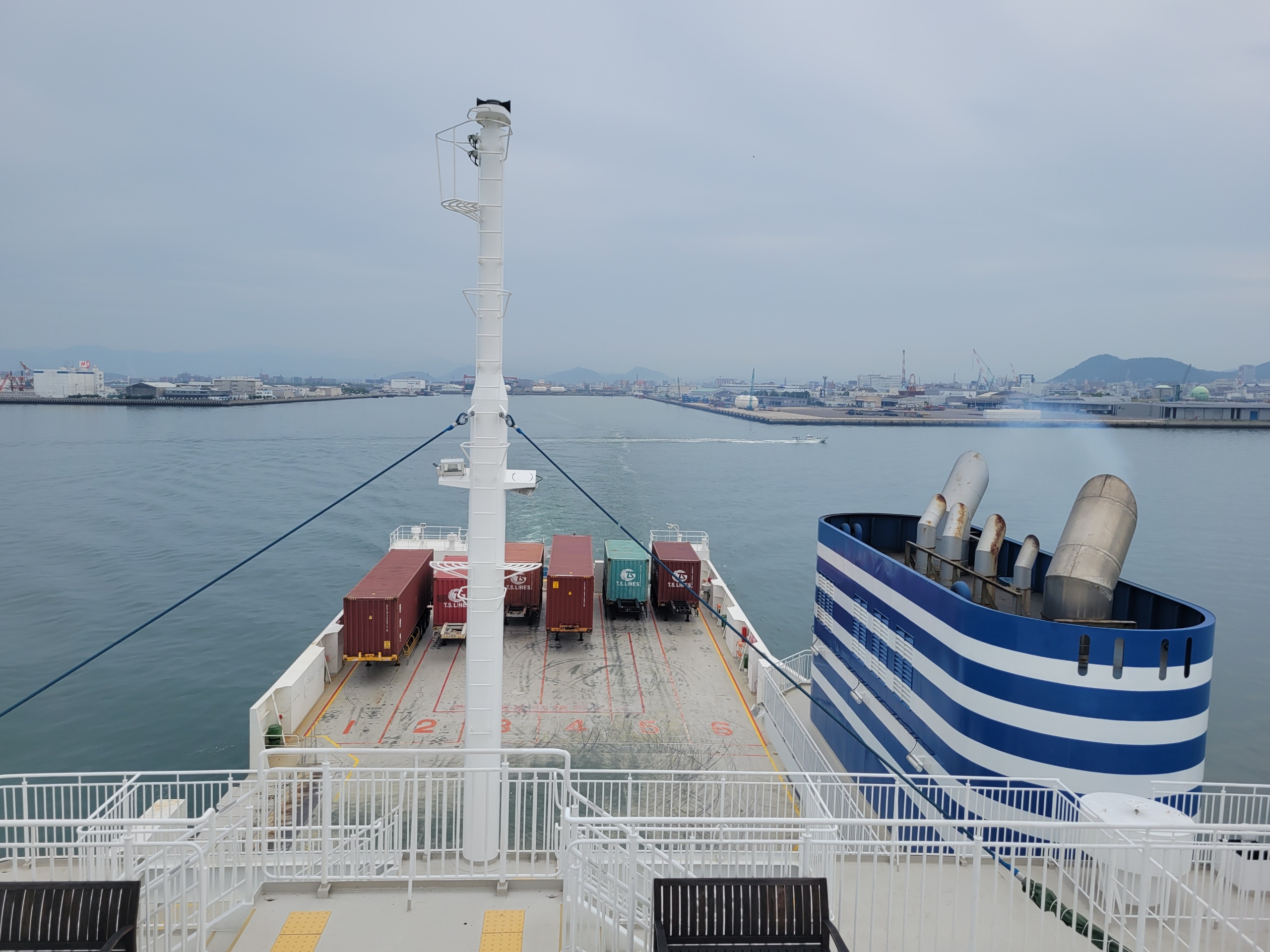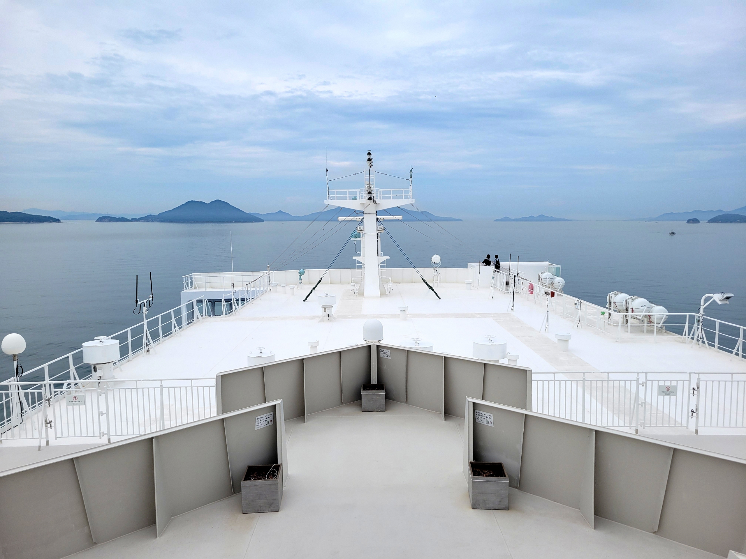 定刻どおり14時に高松港を出航。フェリーに乗ること自体がイベントみたいなものなので、4日間いた香川県を離れる寂しさはあまり感じない。