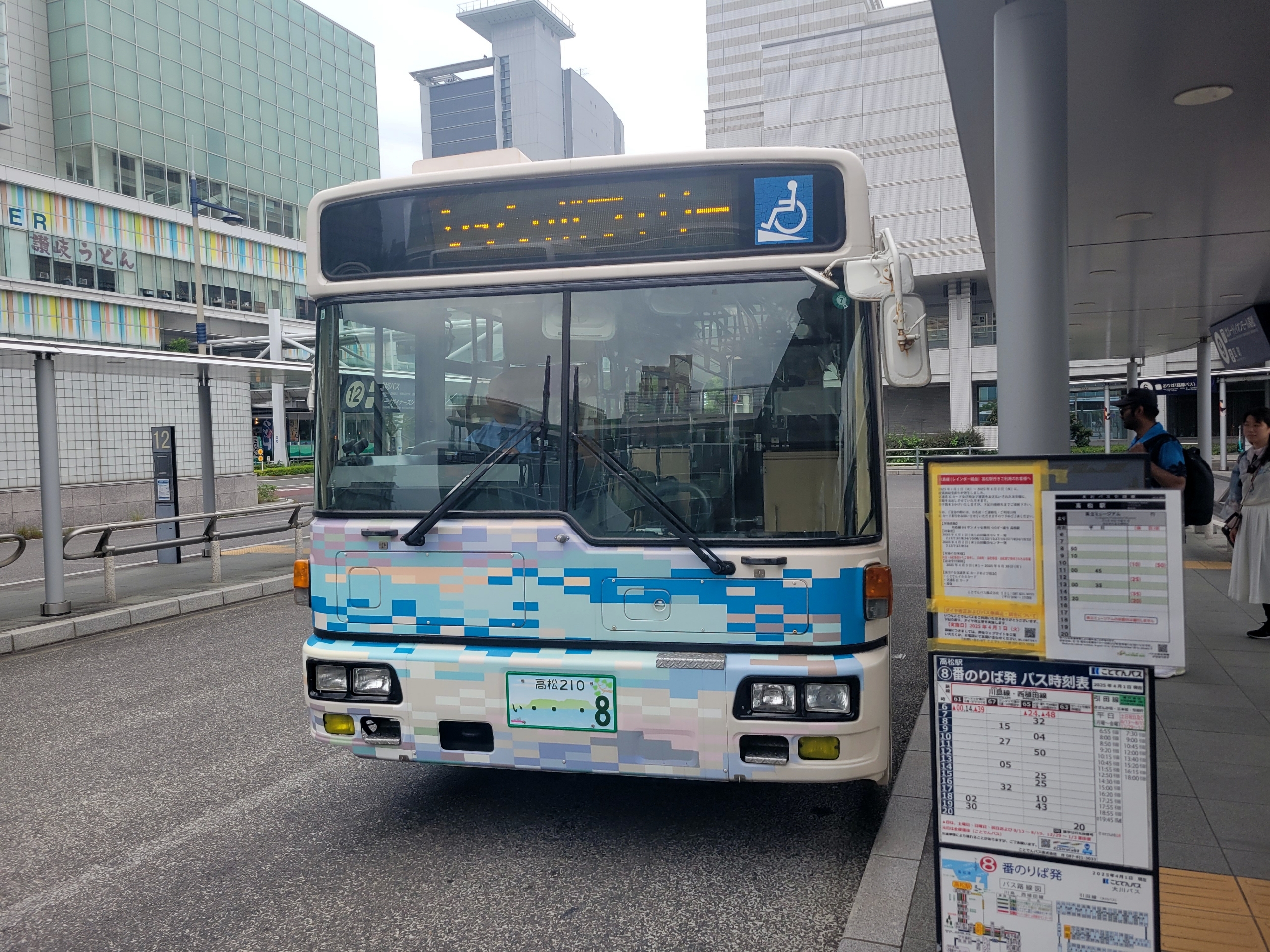 高松駅前のロータリーから出発する、ジャンボフェリー専用の無料送迎バス。
