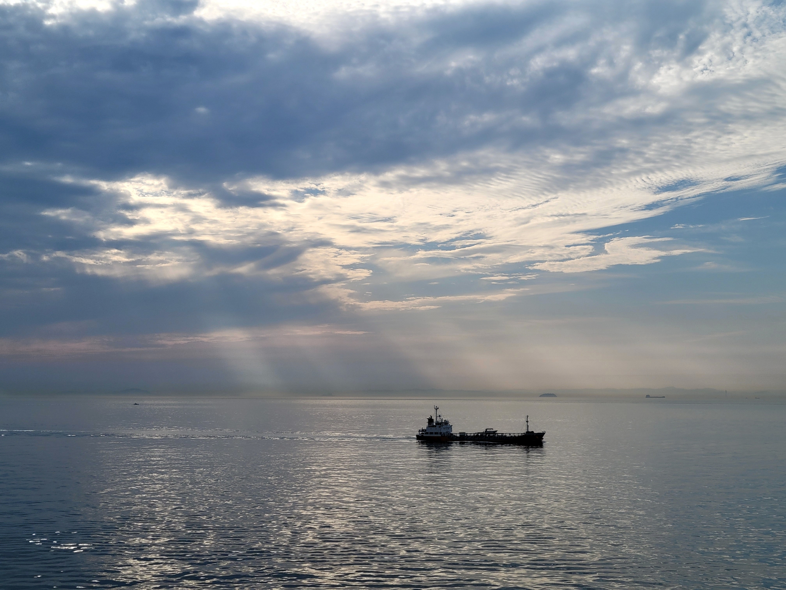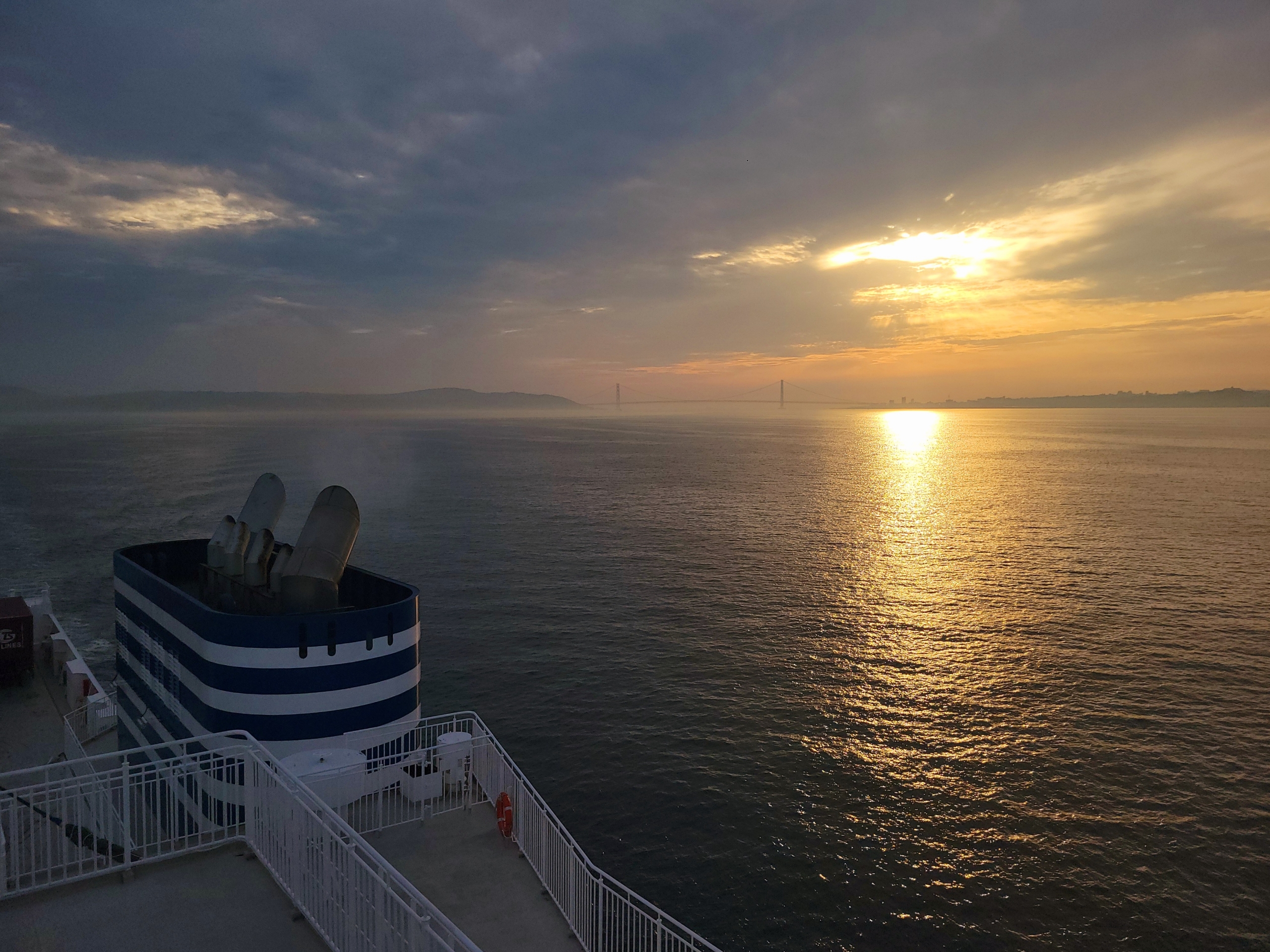 雲が増えてきて夕陽は無理かと思っていたが、明石海峡大橋の方向に日差しが出てきた。なんともグッドタイミング。船旅のフィナーレ、いや今回の旅のフィナーレを飾ってくれているのか。