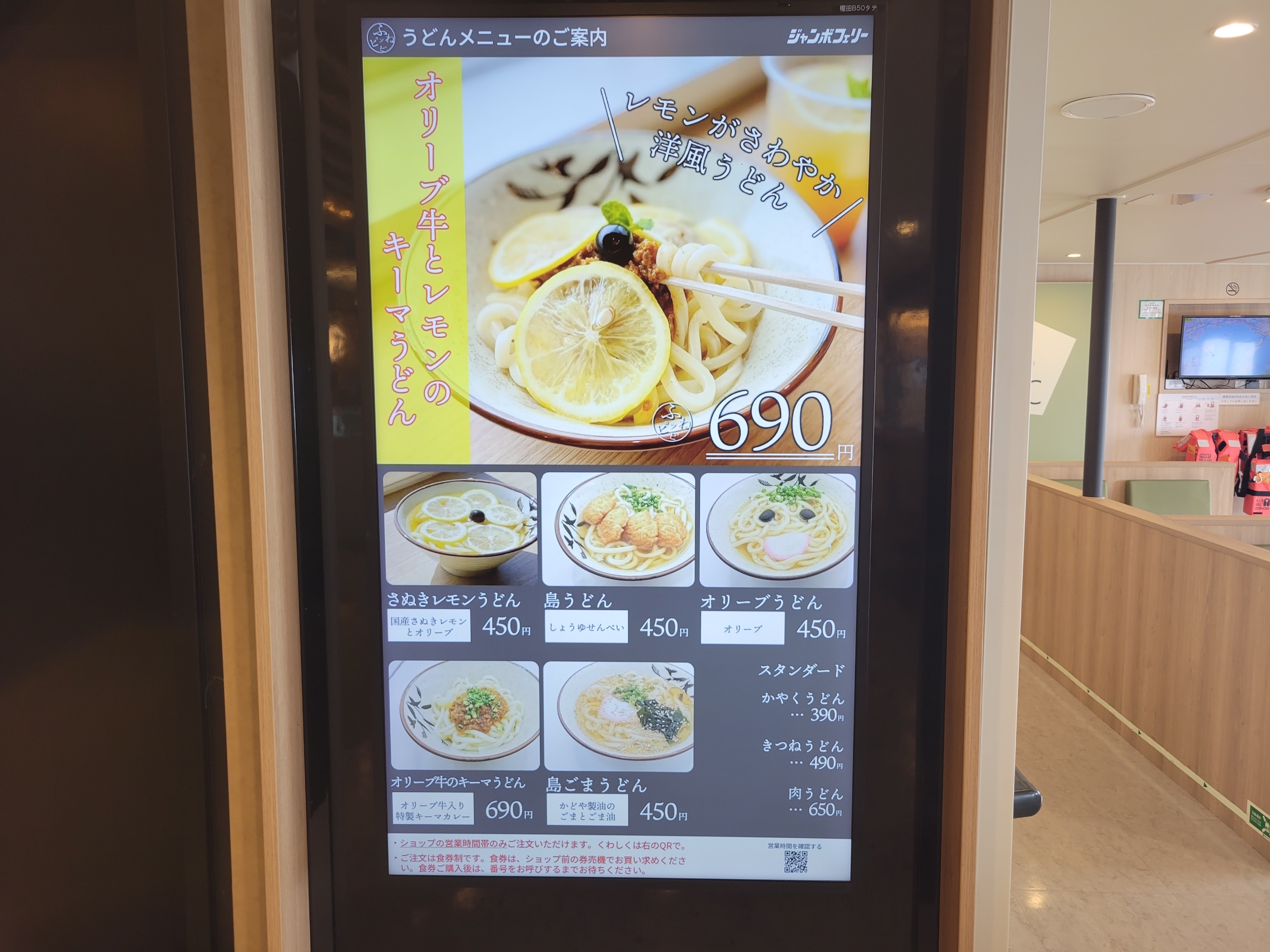 うどんコーナーは高松〜小豆島間は比較的空いていたが、小豆島からは常ににぎわっていた。