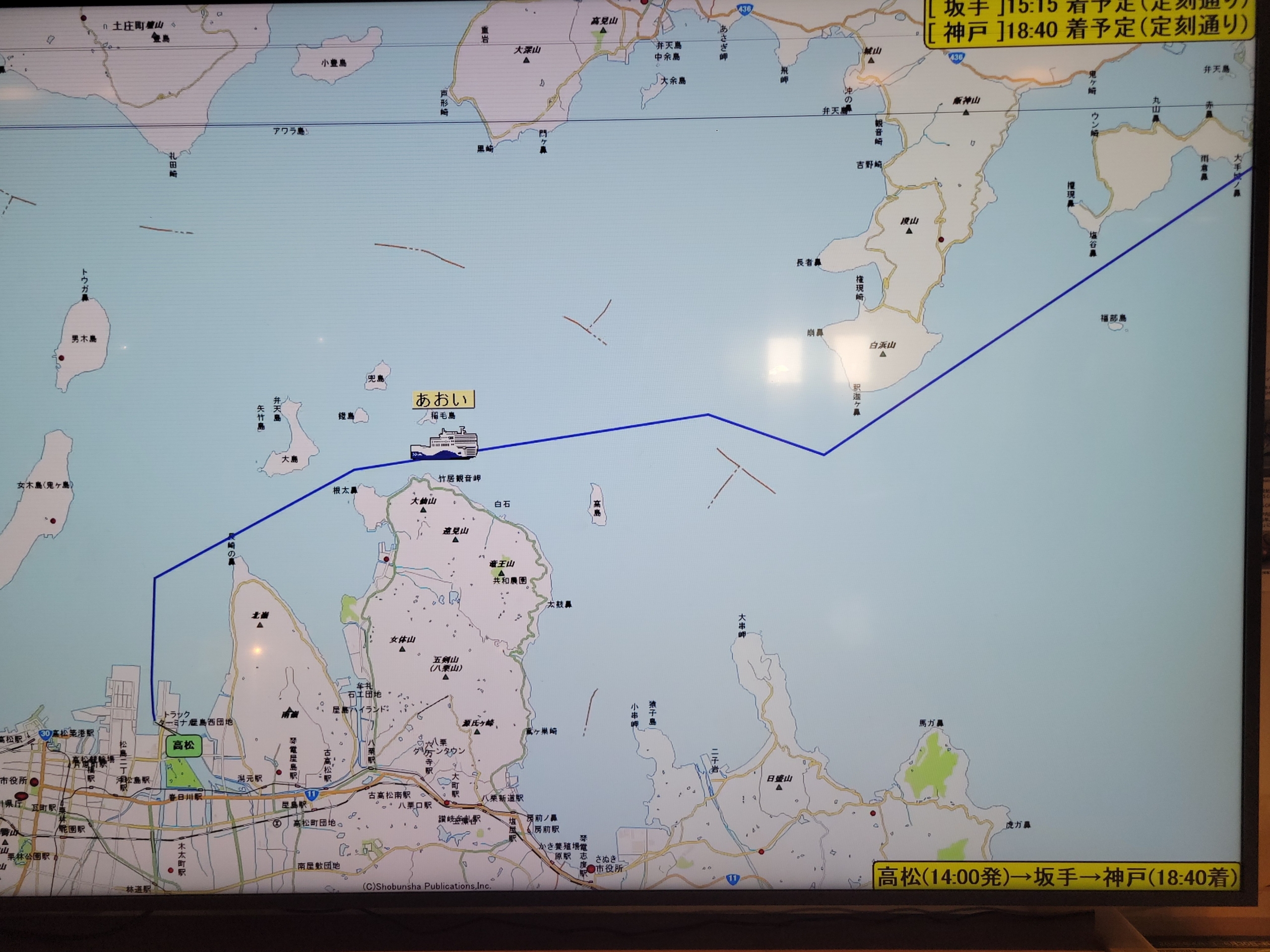 高松東港14:00発→神戸港18:40着