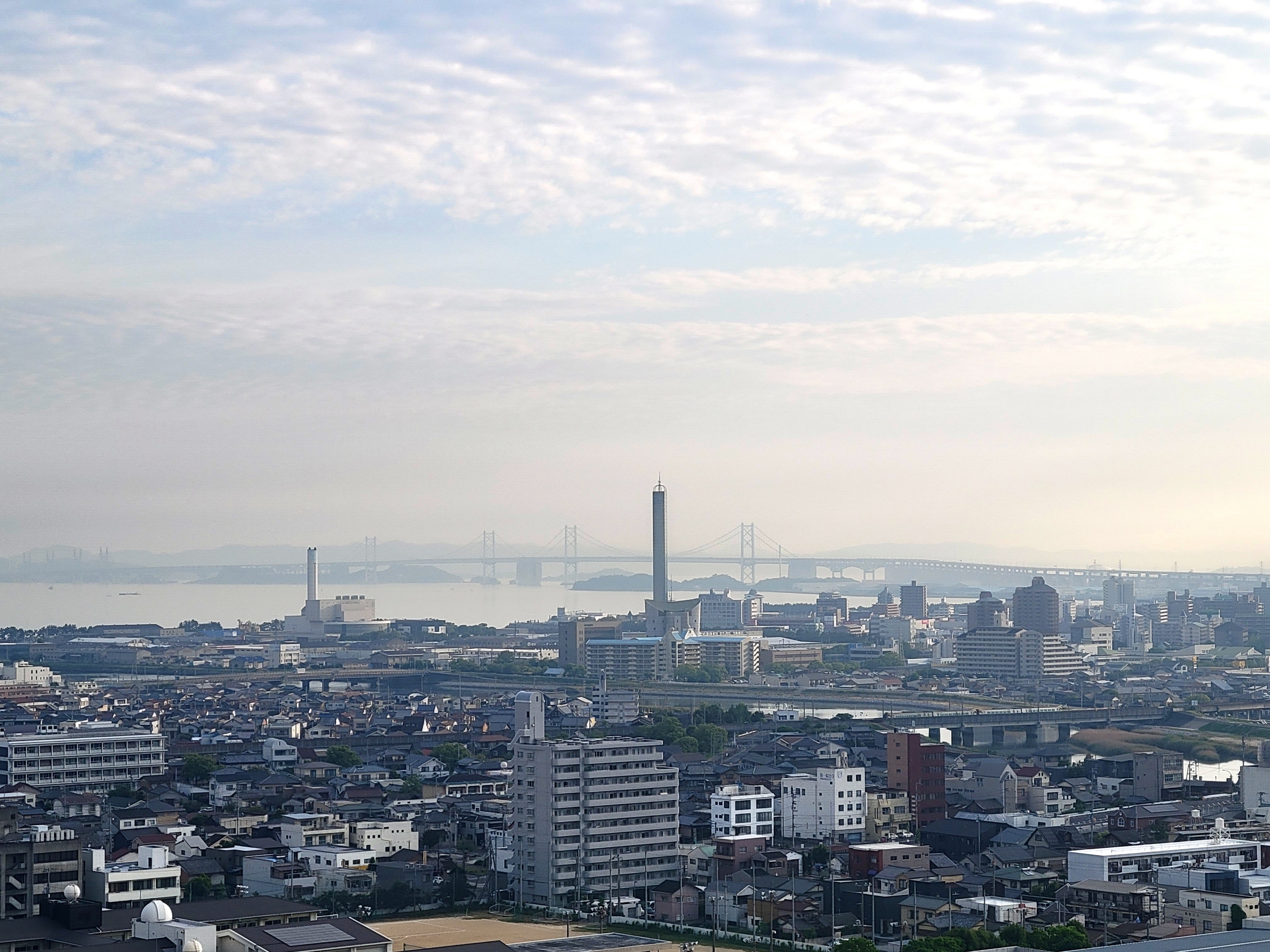 陸地の上のあたりに茶色っぽいエリアがあるのですが、光化学スモッグですかね。加古川の工場地帯がありますからね。