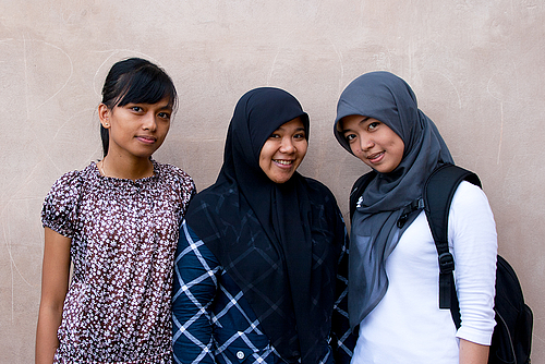スカーフをかぶった女の子も、写真に写ることに特に抵抗はない様子です。