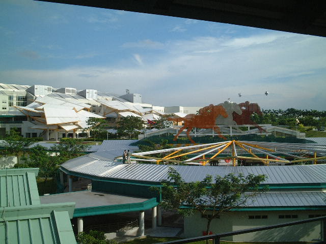 MRTも郊外では地上を走っている。またコインで切符を買うのがめんどうだったので、トランジットカードを買った。MRTは軽快に郊外を走る。まだわりと自然も残っていて、緑の中を走ることも多い。しかし、その郊外の高層マンションの数には驚いた。駅の周辺ごとに20階ぐらいのわりと綺麗な色のしたマンションが、いくつも集まっている。都市部にはたくさんの人がいるが、小さなシンガポールにそんなに土地があるのかとも思ったが、そういうことなのである。おそらく1軒屋をもつことはほぼ不可能だろう。が、こうして計画的に郊外にマンションをMRTの周辺につくることで、土地が少ない問題、利便性、交通渋滞の問題を解決しているのだろう。いささかシンガポールのやりかたに感心してしまった。