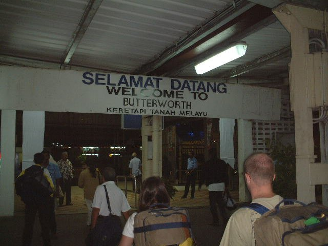 「WELCOME BUTTERWORTH」の看板が迎えてくれる。人の流れにそって歩いていくと、5分ほどでフェリー乗り場についた。あいにくフェリーが出たばかりだったが、10分ほどで次のフェリーがやってきた。このフェリーは交通の要所バタワースとペナン島のジョージタウンを結ぶフェリーで、重要な航路となっている。フェリーの1階部分が車とバイク、2階部分が人が乗るようになっていて、車の利用も多いようである。ペナン島へはペナンブリッジもあるのだが、通行料が高いのだろうか、あまり使う人がいないようだ。フェリーの改札は自動改札だ。自動改札といっても新しいものではなく、コインを入れるとランプが赤から緑に変わり、自分の力でゲートのバーを回して通るといったものである。料金は片道で0.6RM(20円)と安く、帰りは無料である。