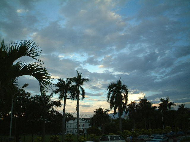 空も一段と明るくなりつつあり、夜の空と朝の空が混じった空の景色は、南国の空を感じさせるものだった。その後、街の中を歩いていった。