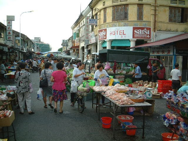 チュリア通りを少し折れると、朝市のような風景が通りに広がっていた。島だけに新鮮な魚を売る屋台が多くみられ、ほかにも野菜を売る屋台、通りの店では食堂でおかゆや麺が売られていた。その活気は朝とは思えないものだった。なんせまだ8時前。華僑のパワーを思い知らされるようであった。こんなに朝の早い華人に生まれなくて良かったと、なぜかホッとしていた。