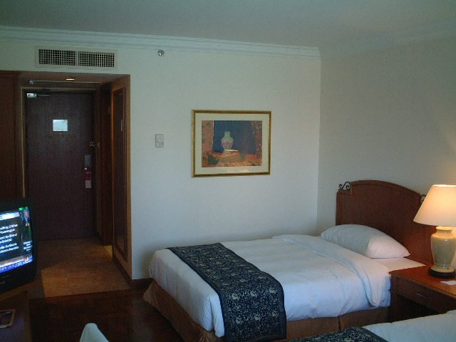 部屋に入るとさすがに、すばらしい。まず空気がおいしいというか、クーラーが気持ちよくかかっている。ベッドには綺麗なシーツがかかっていて、テレビもちゃんとついているではないか。バスタブもちゃんとついているし、タオル類のアメニティもたくさんある。感動した。前までの旅行では当たり前の光景だったが、こうも感動するとは。やはりいいホテルは金次第だろうか。日本にいると1部屋210Rm(7,000円)出したところで、こんなホテルには泊まれないだろうし、こんな贅沢もいいだろうと納得させていた。