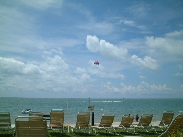 ビーチへもすぐにいけるのだが、なんやらあやしい看板があった「危険!くらげ!」と。そんなとこで泳ぐわけには行かない。確かにビーチを眺めていると、泳いでいる人はおらず、マリンスポーツをしている人ばかりだった。ジェットスキーやパラセイルなど。料金も日本やグアムなどより格段に安いようだ。