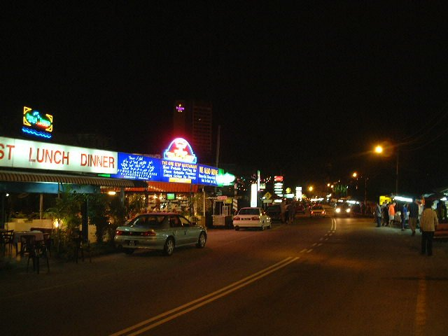 いくつかの食べ物の店が集まり、どれも安い。観光客も多いが、地元の人もわりときているようだ。いつものお気に入りの、「ワンタンミー」を注文。あと「タイガービア」で、今日はこれで4本目である。ここのワンタンミーもおいしかった。まさに麺、スープ、具が三拍子でうまい。マレーシア人はサッカーが好きなようで、大きなテレビで放送されている。僕もそれを見ながら、ペナン島のビールを味わった。フェリンギ通り沿いにはわりと日本語の表記が目立つ。といってもカタカナが多いのだが。屋台でも「サテー」とか「TEPPANYAKI」など。テッパンヤキは英語でも浸透しているのだろうかとか、関係ないこともまで考えてしまうのだが。しかし、実際僕が見た日本人は女の子3人組だけだった。あの海を見たらもう行きたいと思わないかもしれないが、値段も安くていいし、あまり日本人には会わないし、それなりにいいと思う。