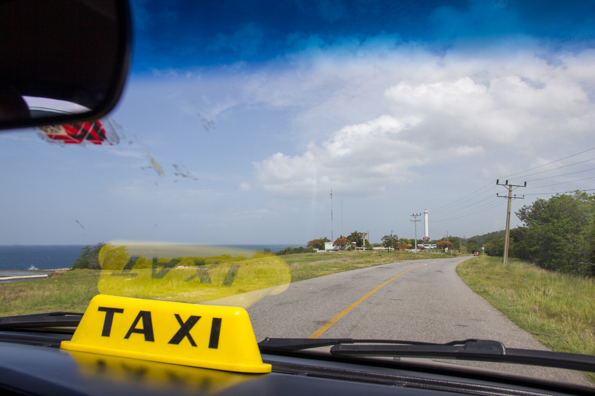 ハバナまでのタクシーはクラシックカーではなく、残念。