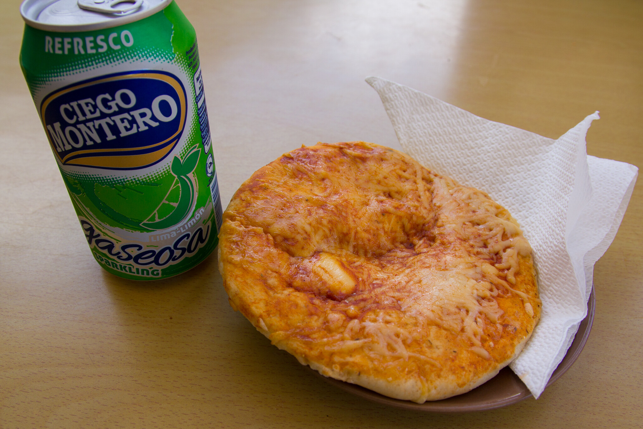 ピザ風パン0.45CUC(約58円)とメロンソーダ0.5CUC(約64円)。