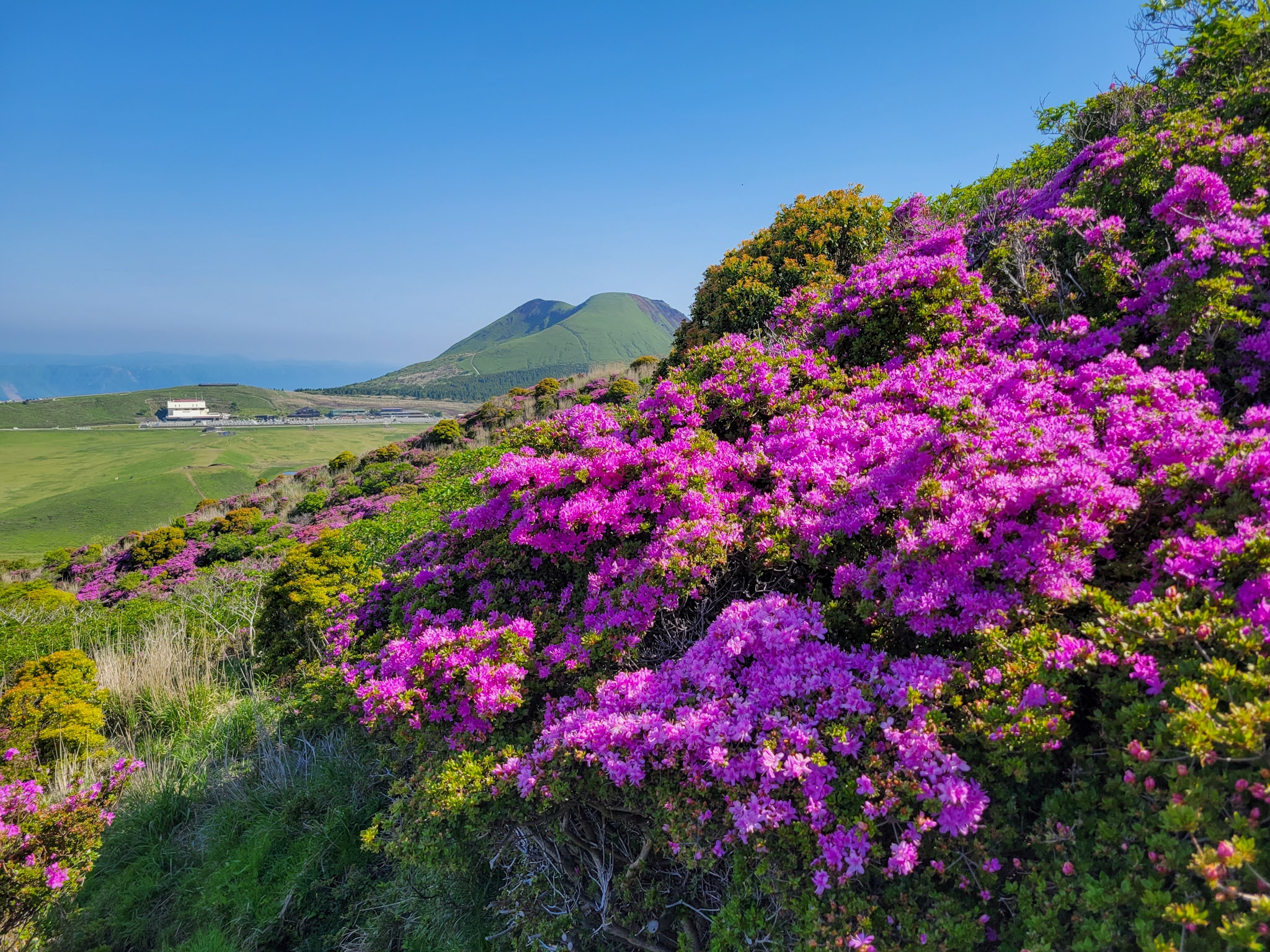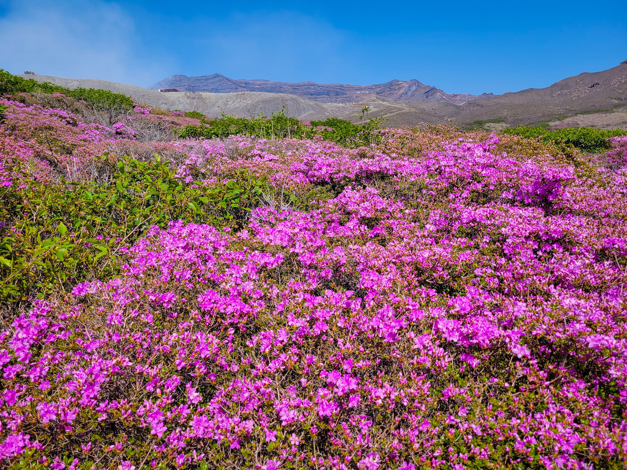 阿蘇山上公園の周辺はミヤマキリシマが綺麗に咲いてました。