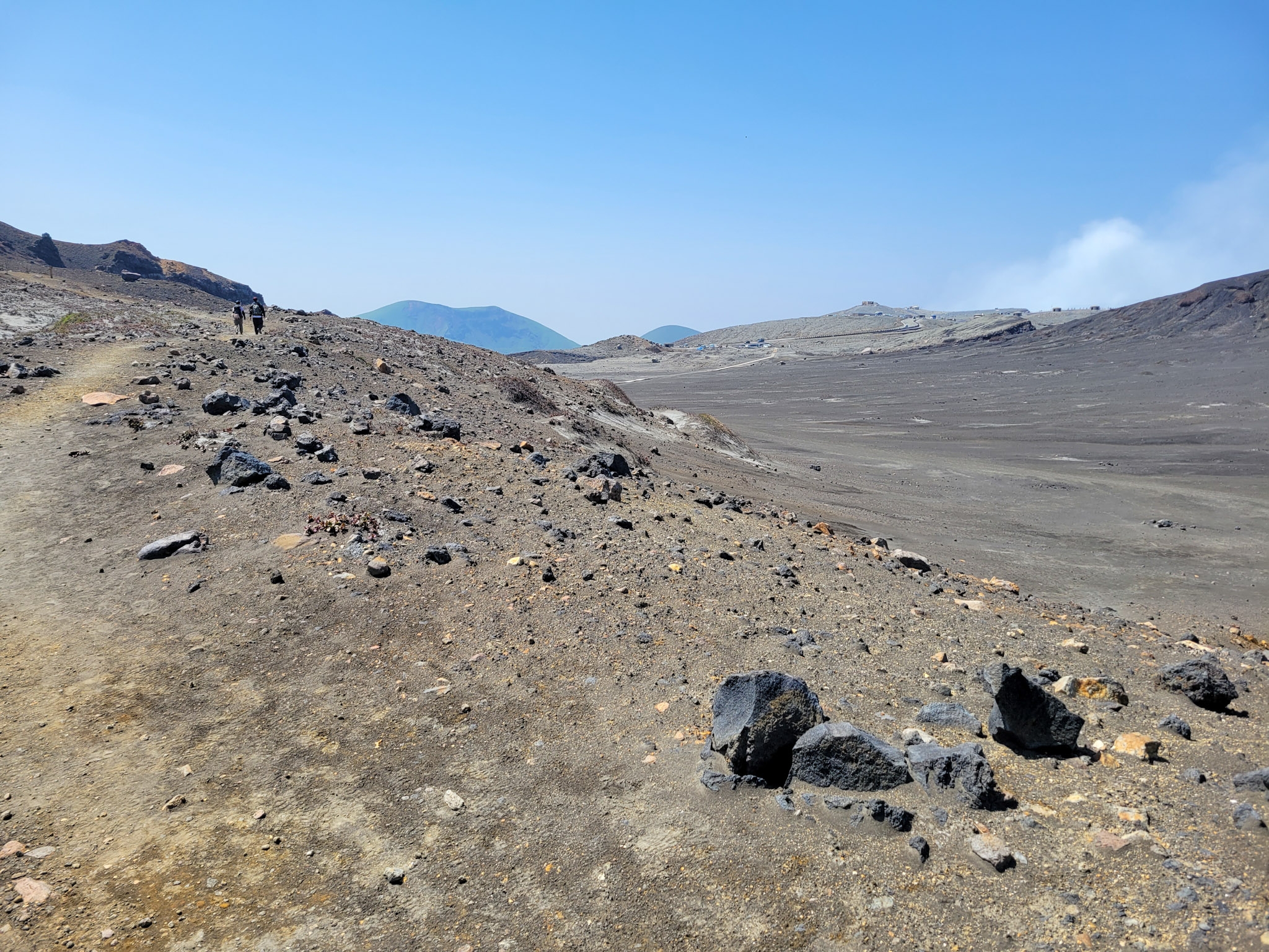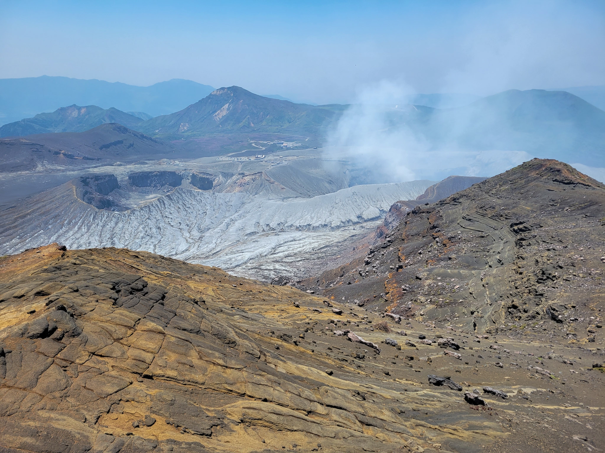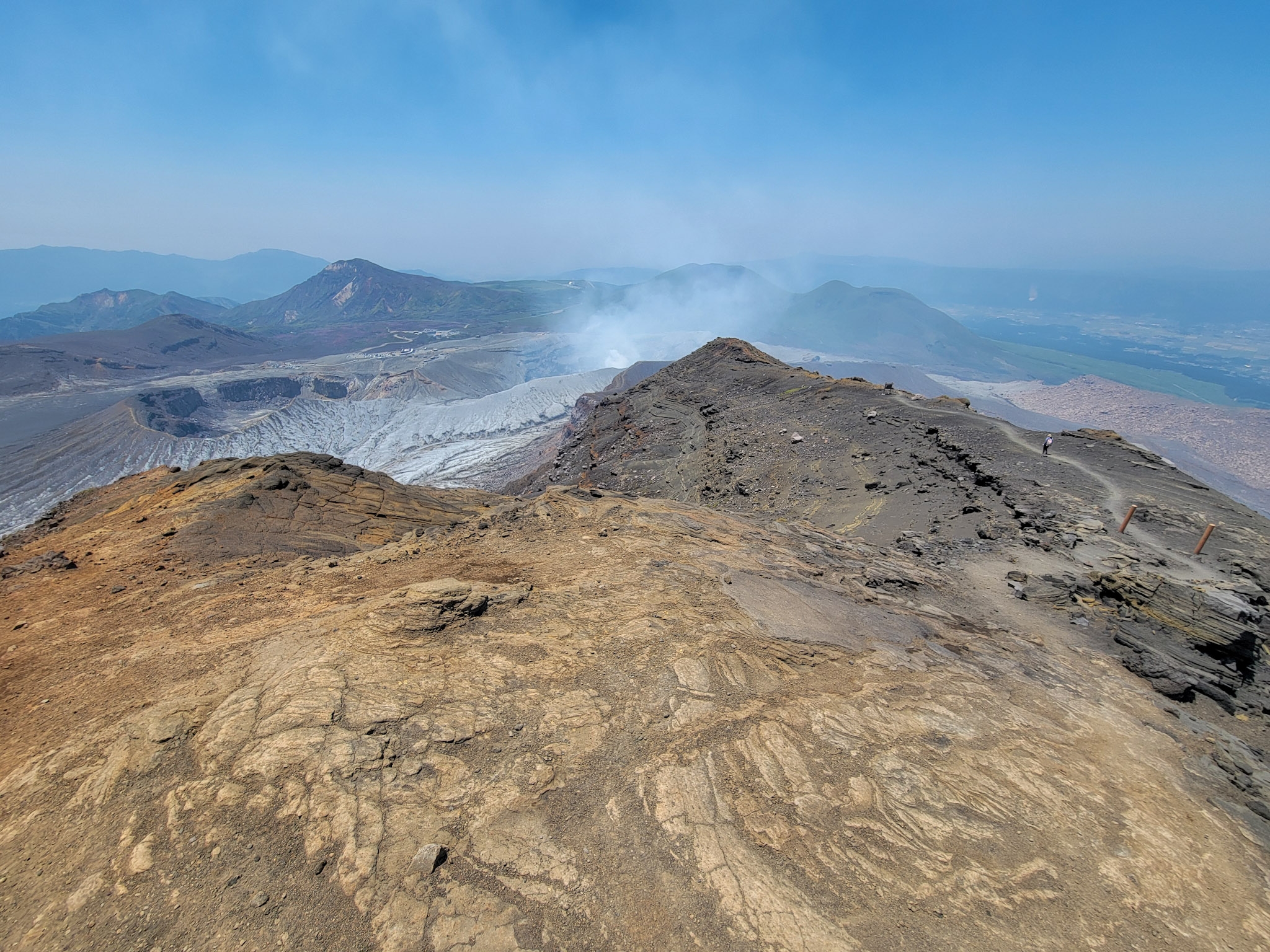 遠くに中岳火口から噴煙が当たる様子を見ることもできます。