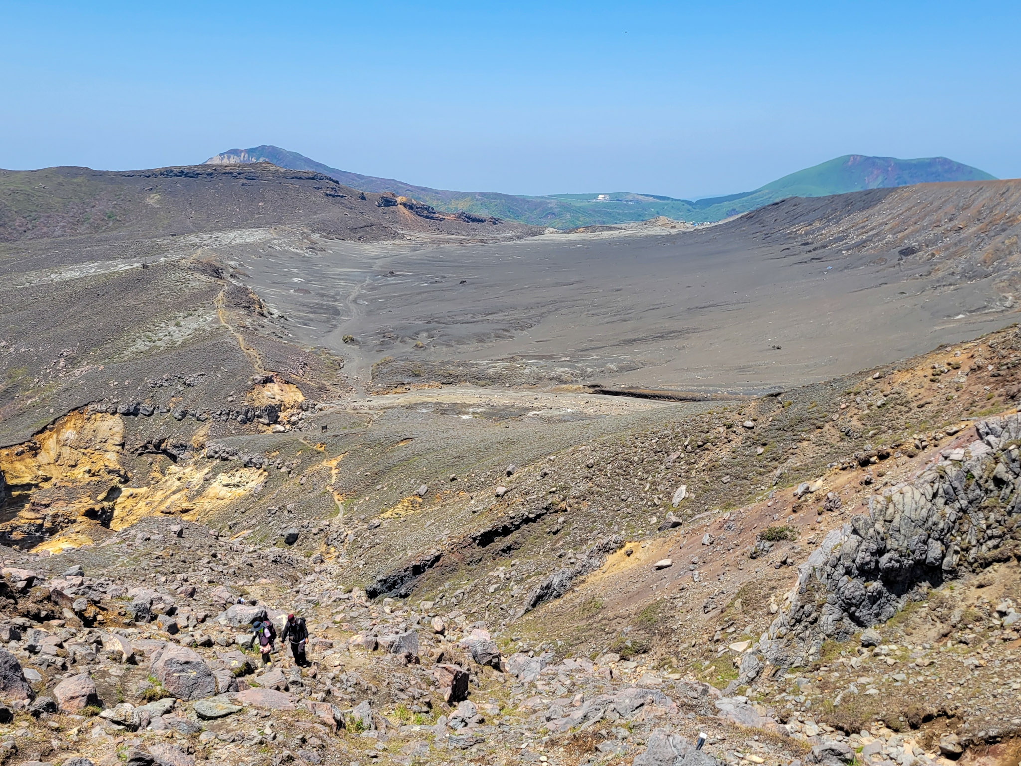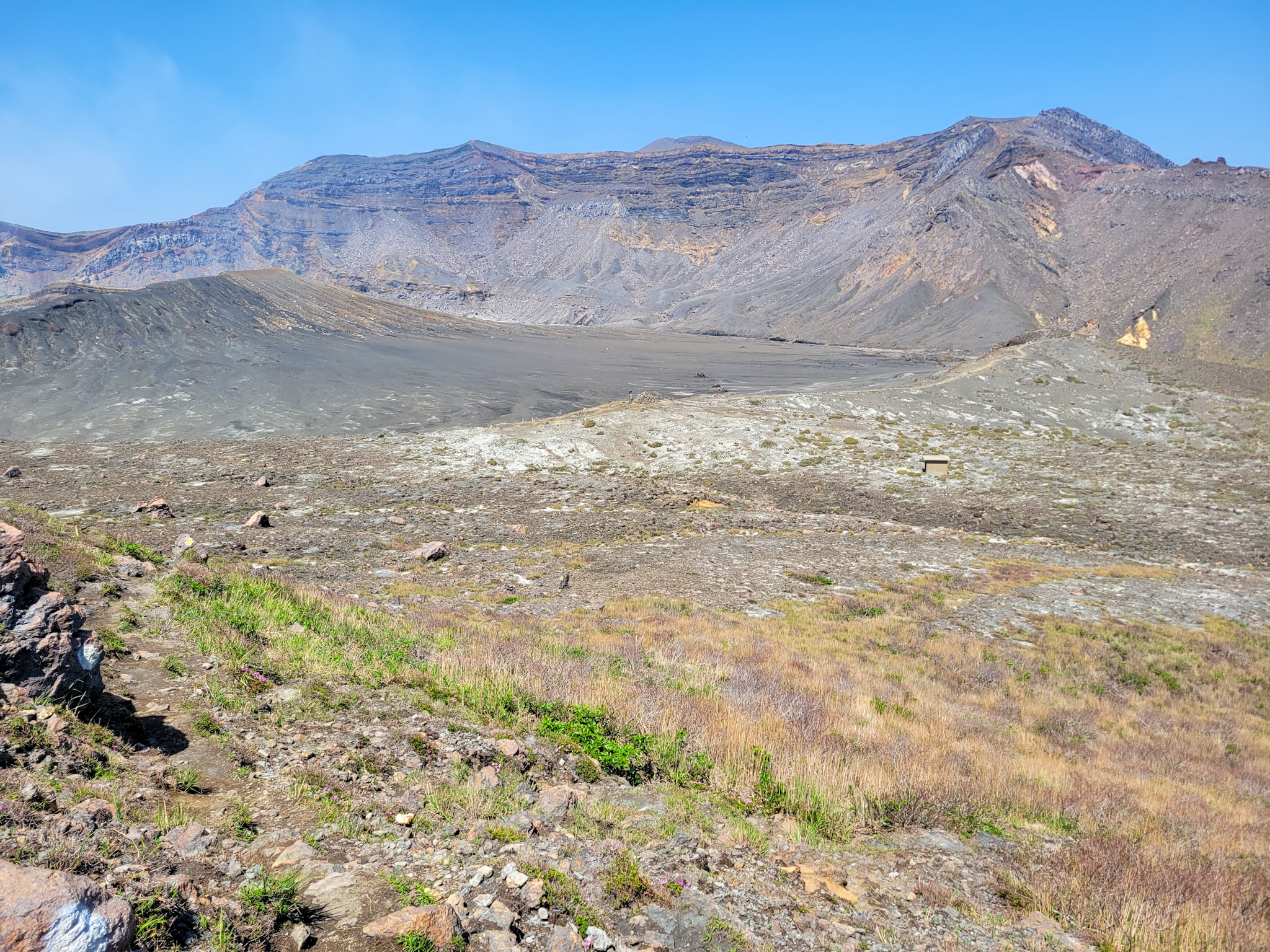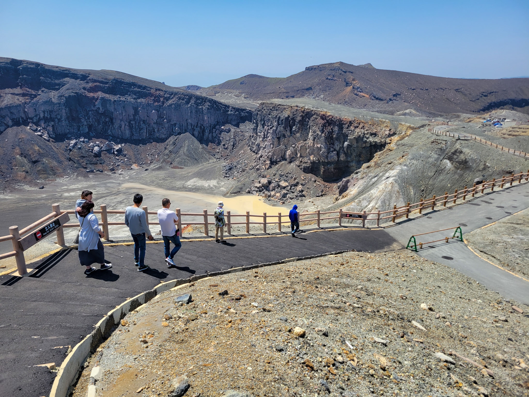 遠くに中岳火口から噴煙が当たる様子を見ることもできます。