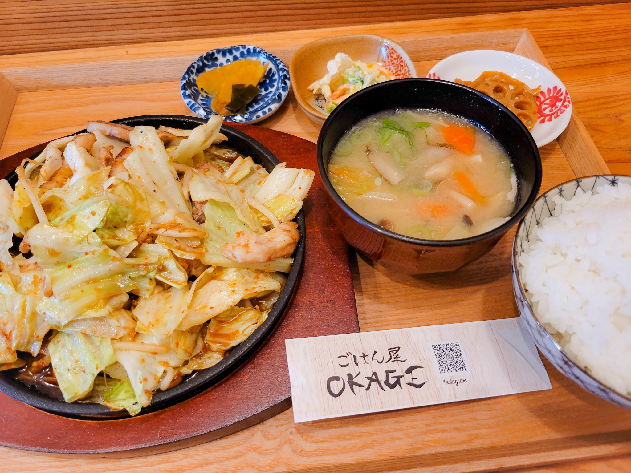 宿の人におすすめしていただいた「ごはん屋 OKAGE」。