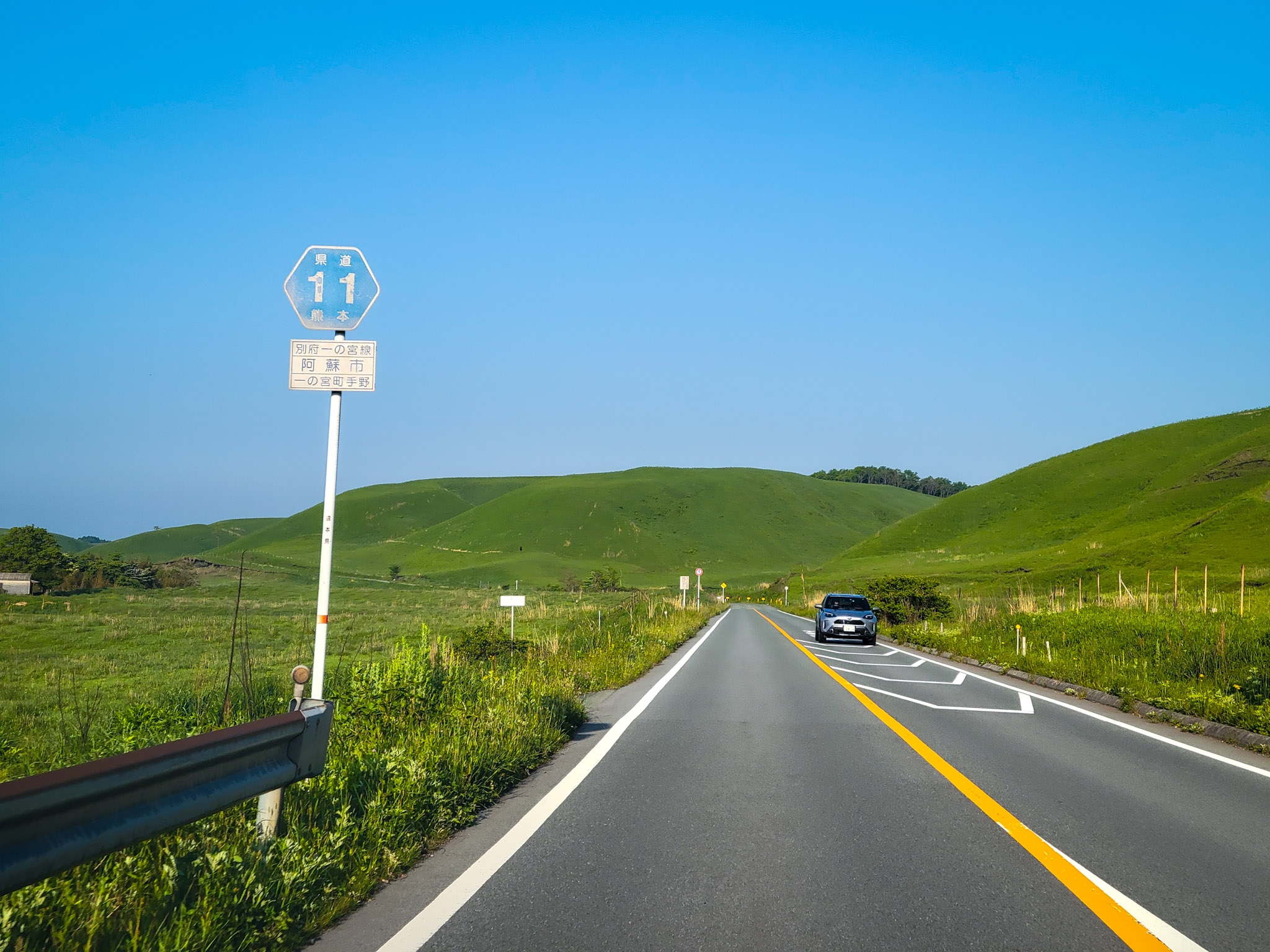 このような草原風景は阿蘇山の外輪山北側一帯に広がっていて、