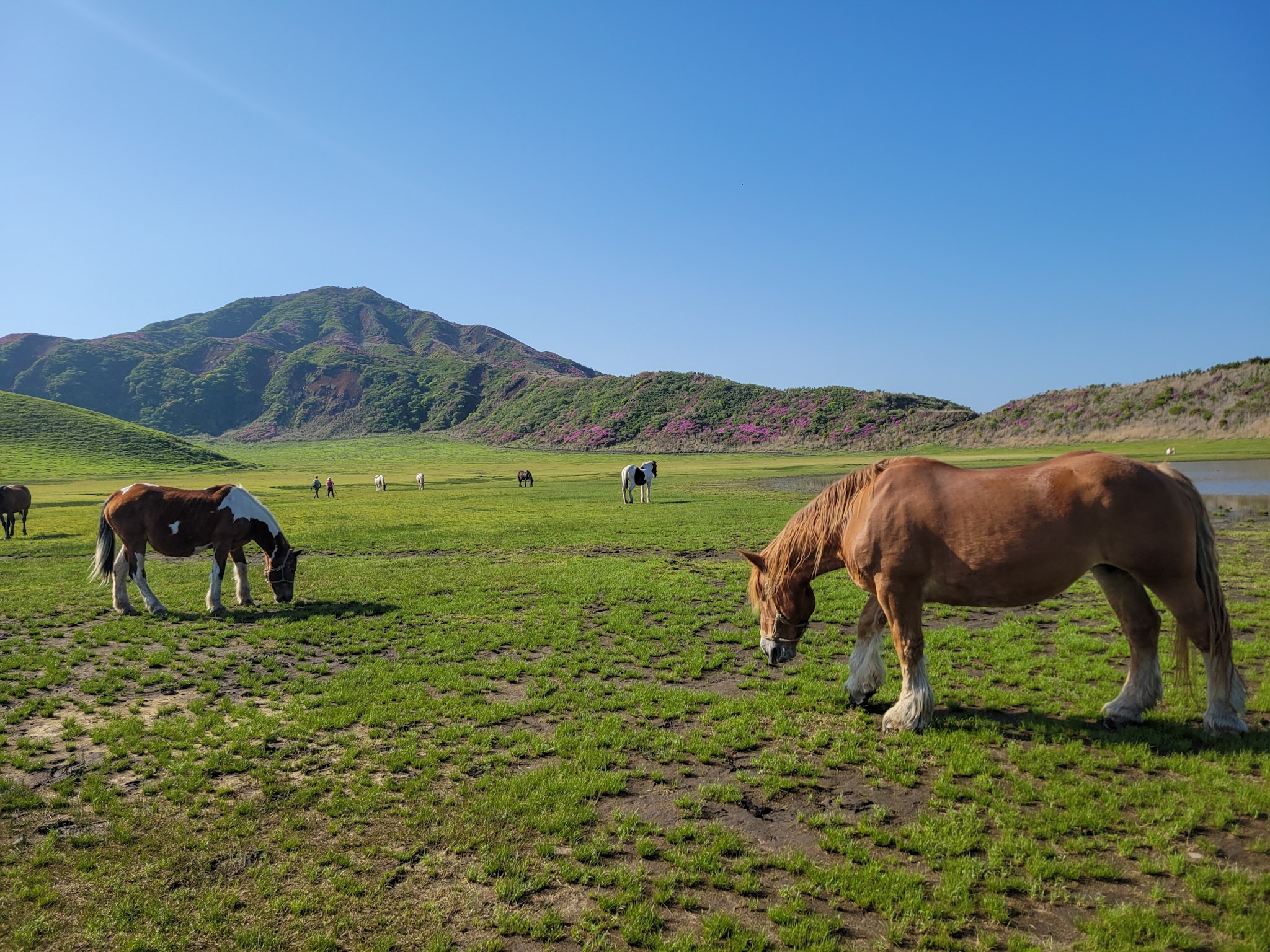 過去に来たのは秋と冬だったので、緑に覆われた草千里ケ浜を見るのは初めて。