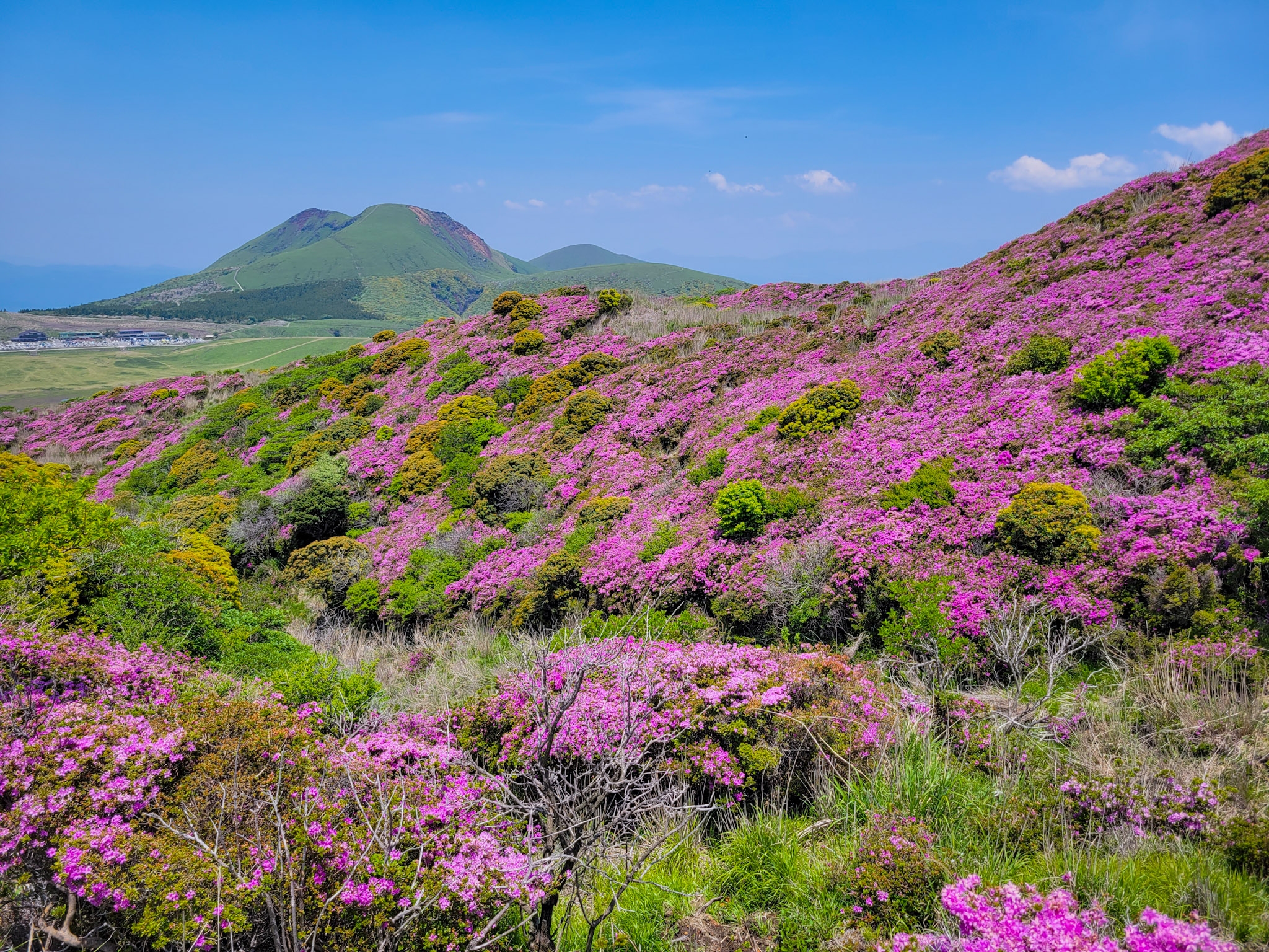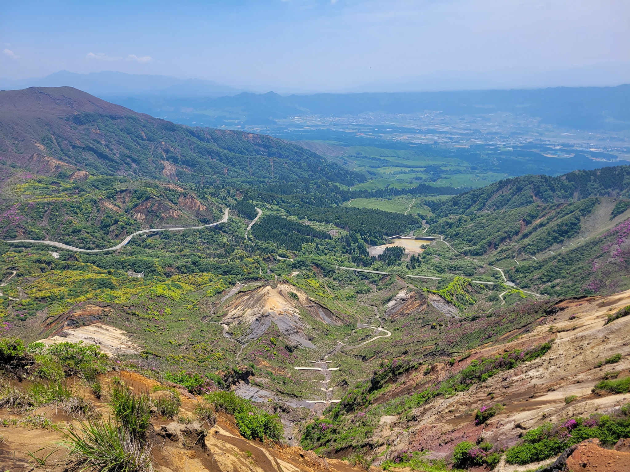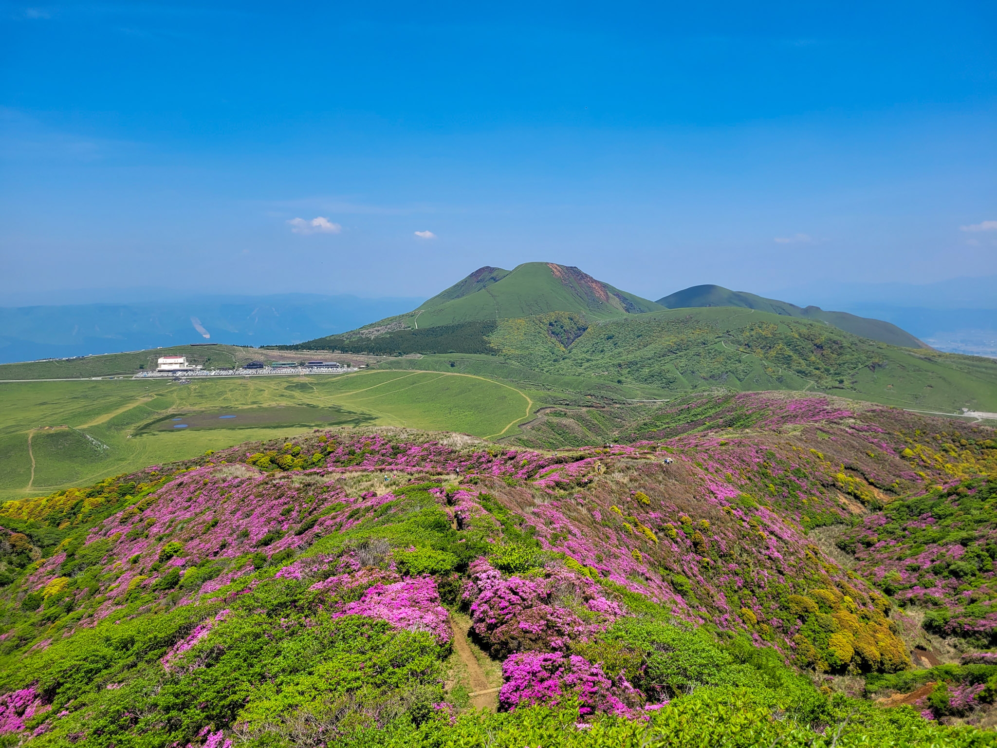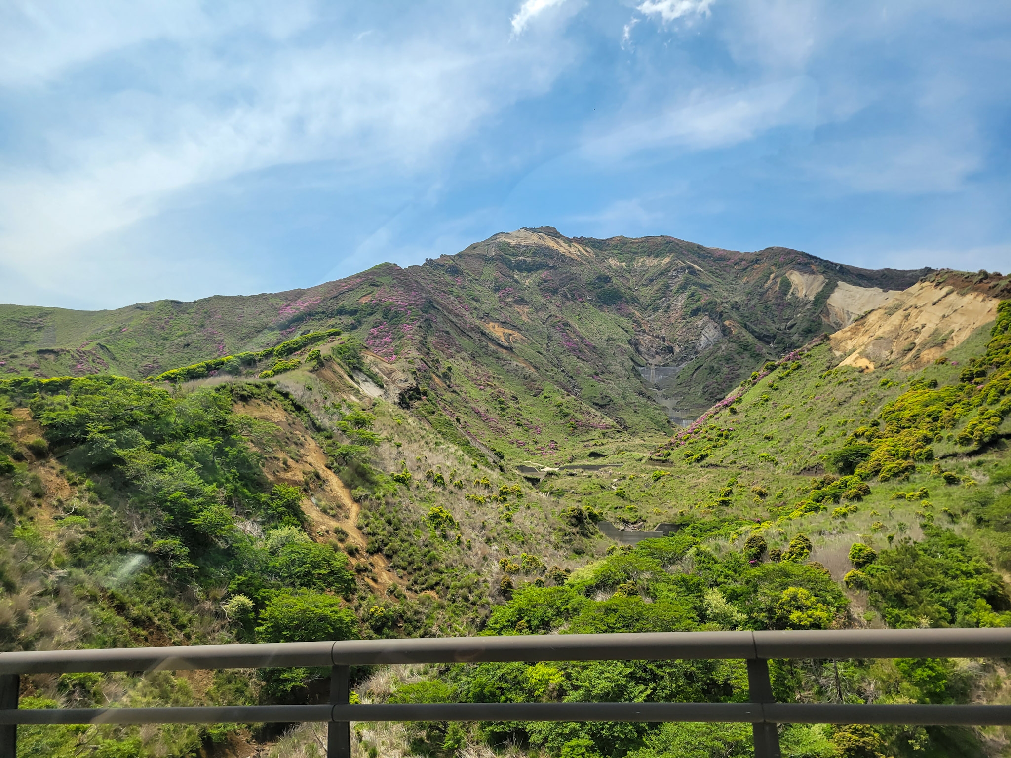 山頂付近に来ると南側のカルデラ、高森方面の眺望がひらけます。