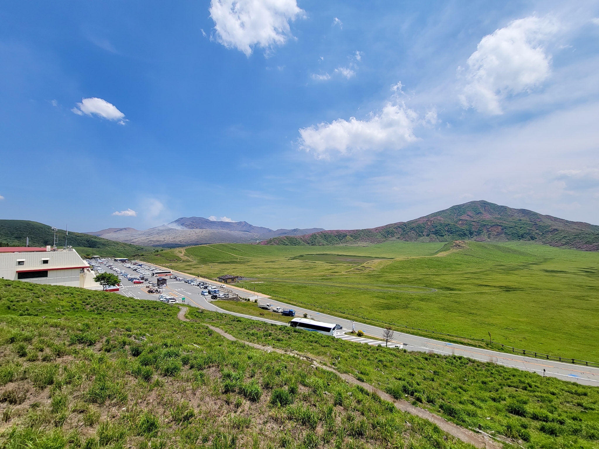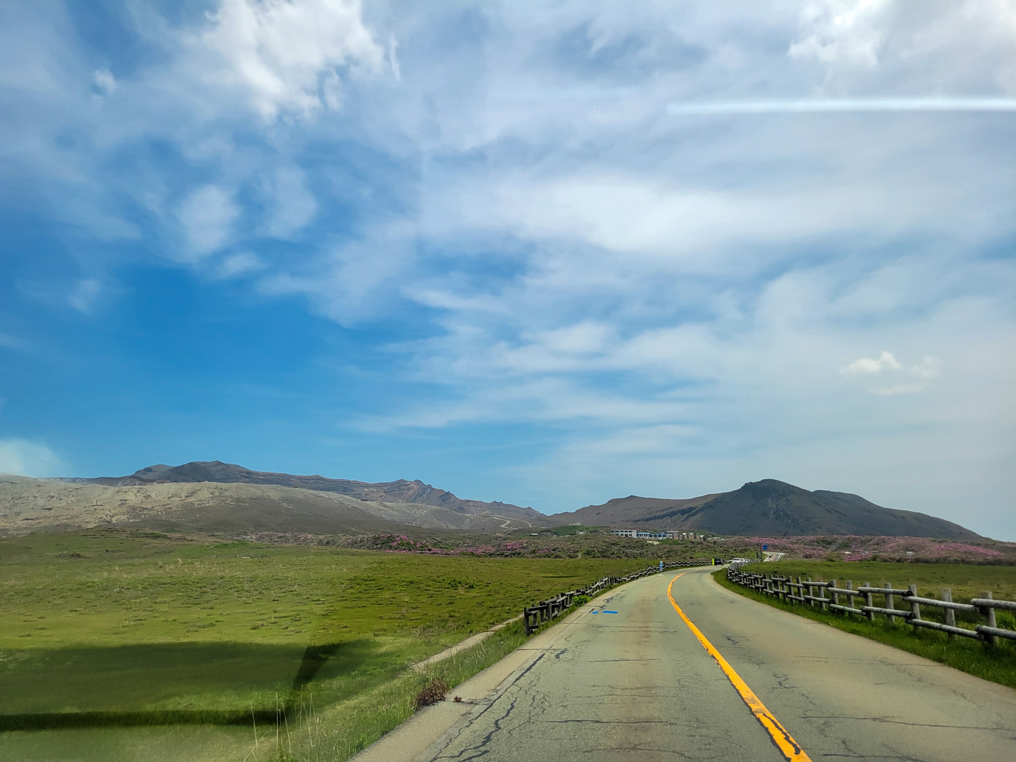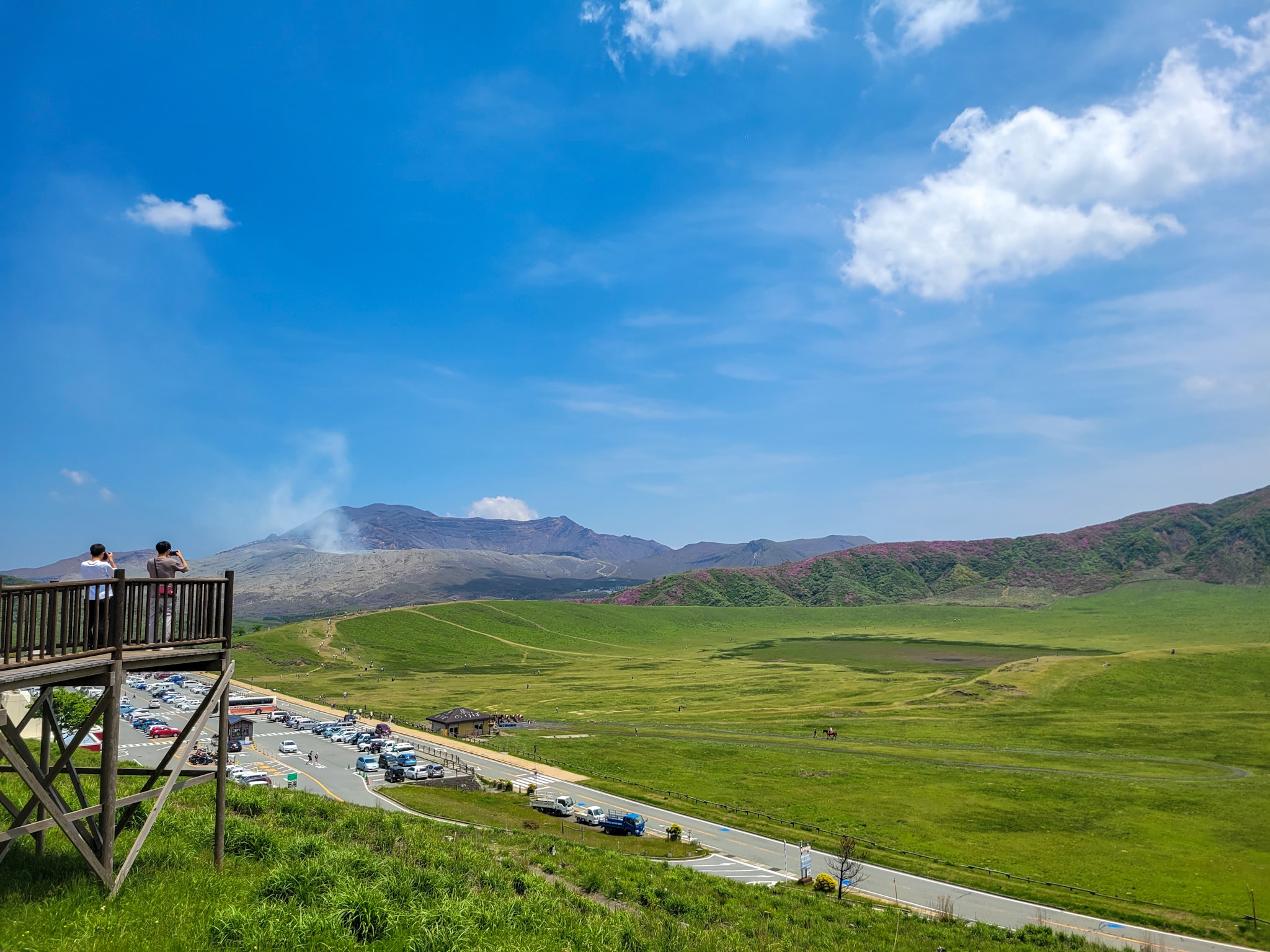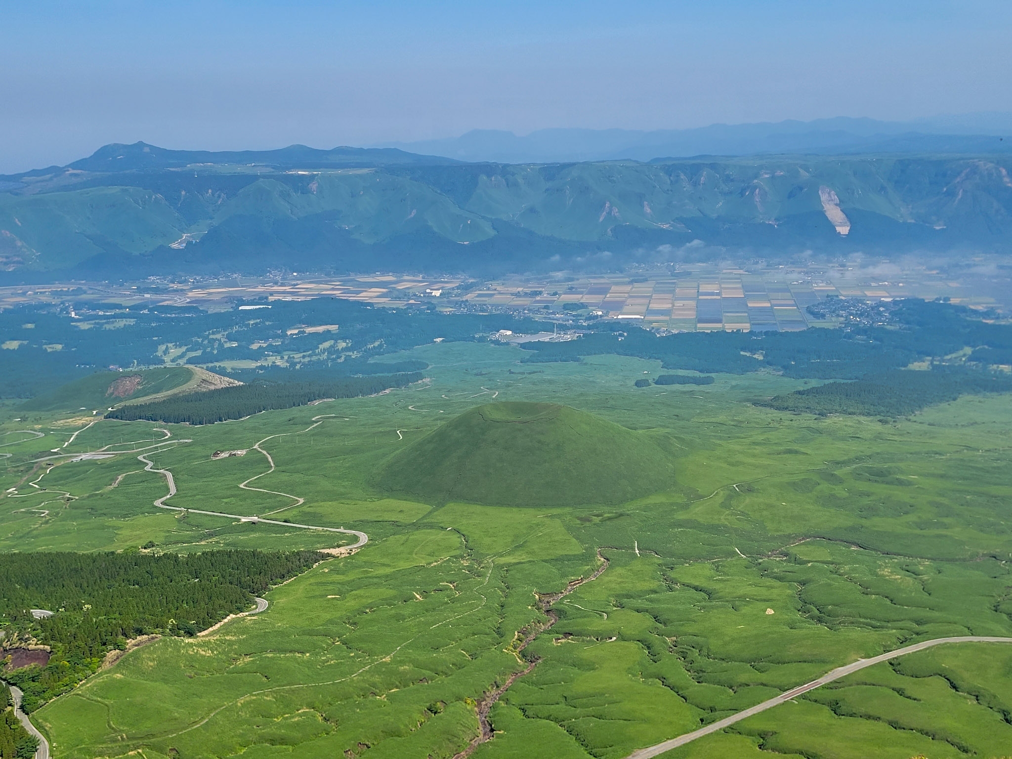 阿蘇カルデラの外は、阿蘇山の噴火が作り出した溶岩台地。