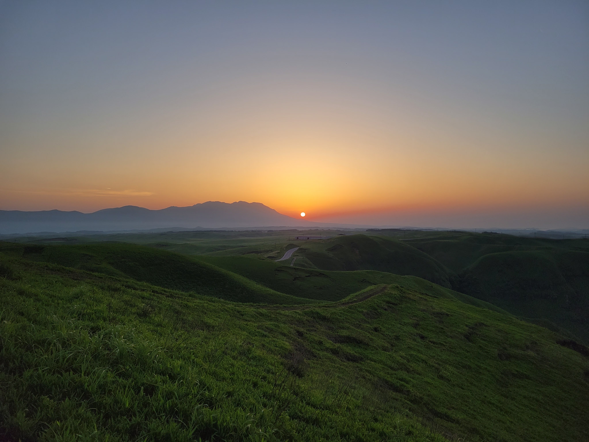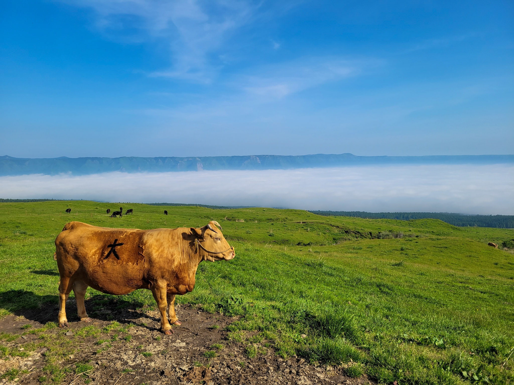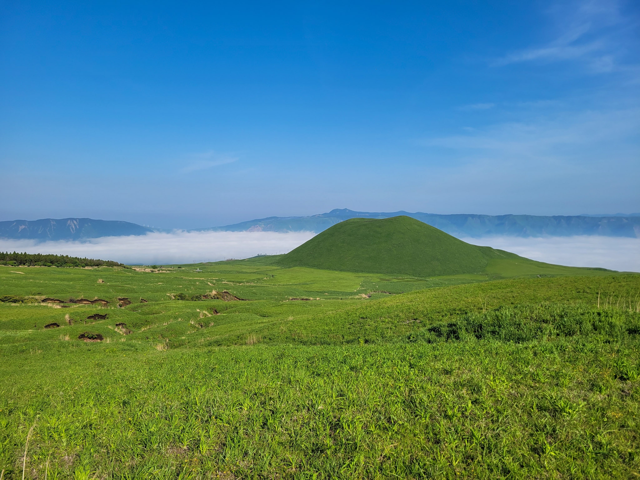 坂道を登ってきて、大観峰付近にくると霧から抜けて、快晴。