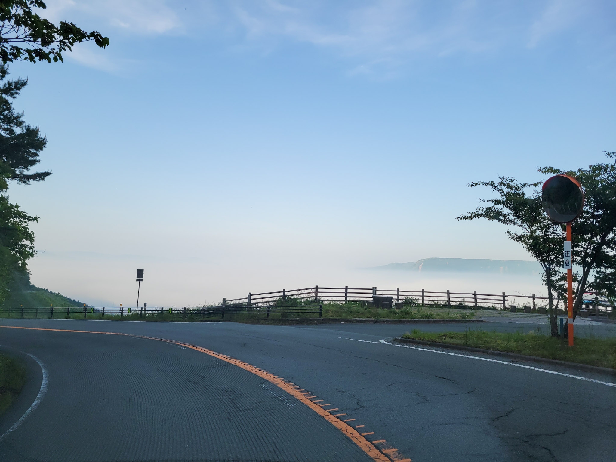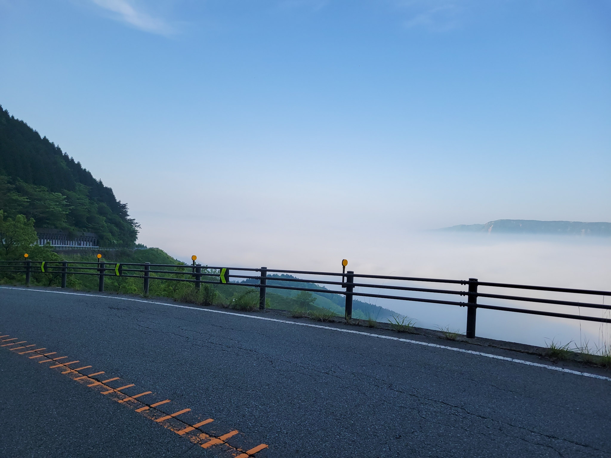 朝起きて、窓の外が霧がかってたので、これは雲海だろう。