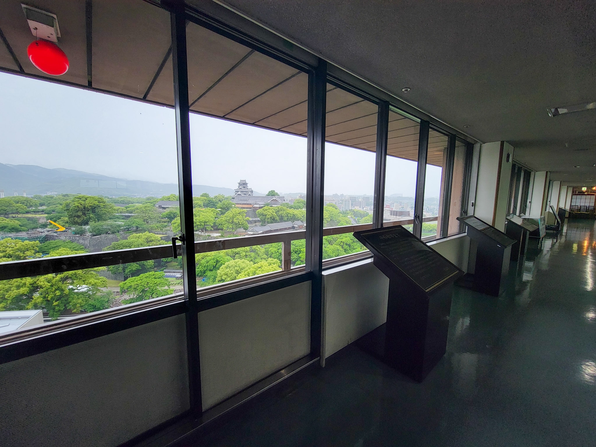普通にエレベーターで14階へいくと熊本城を一望できます。