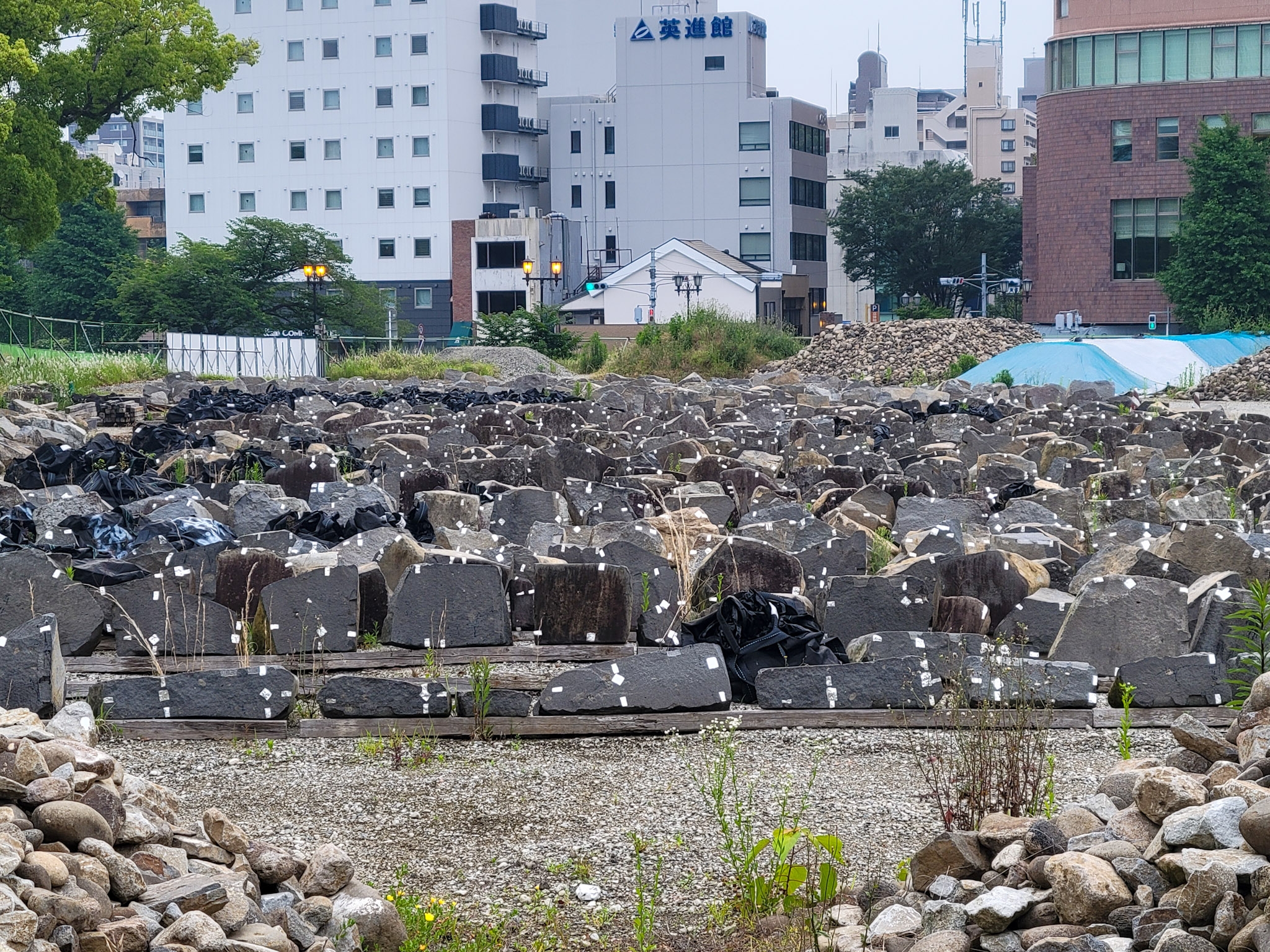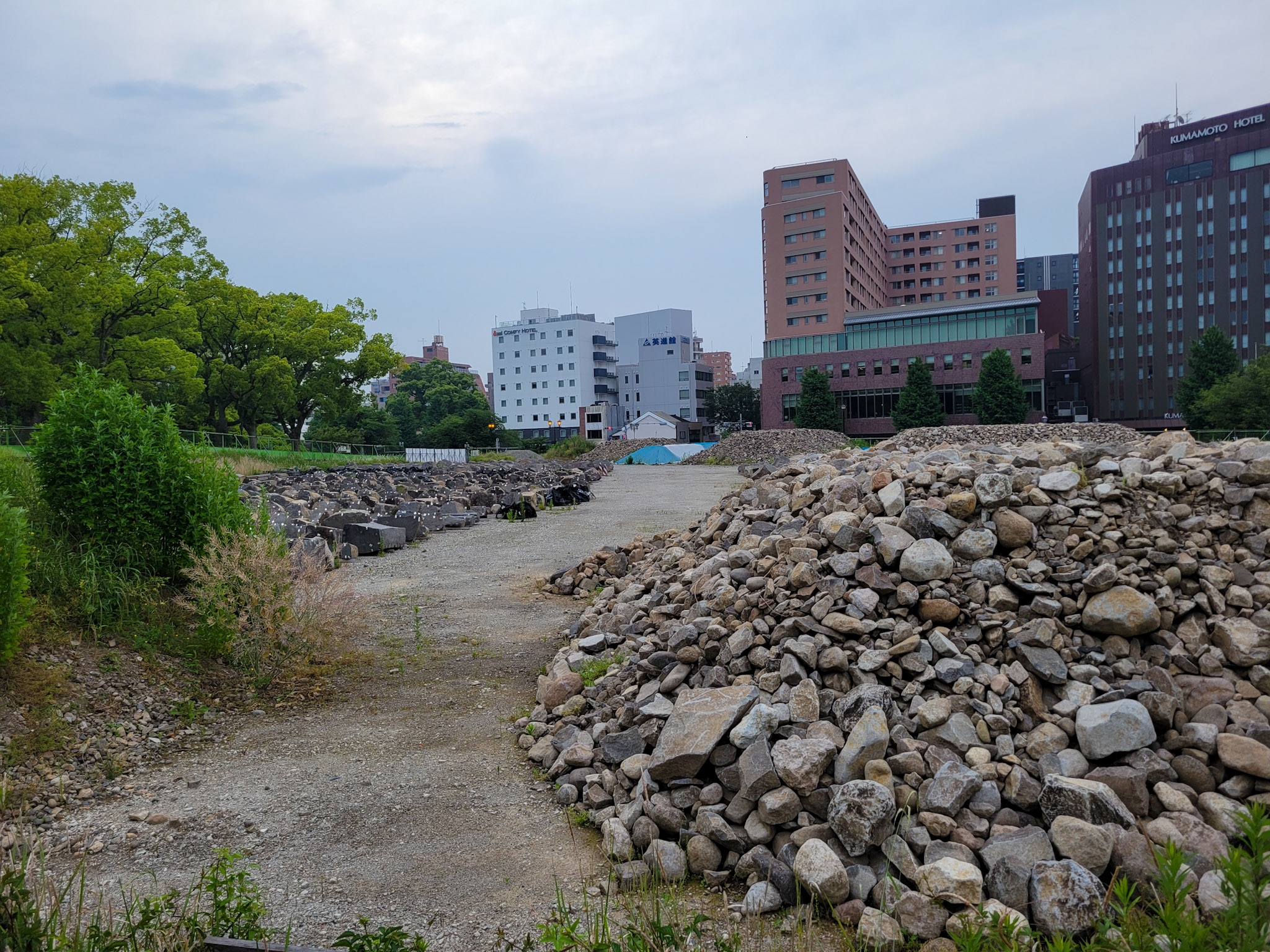 日本たばこ産業熊本支店の跡地に、無数の石が置いてあります。
