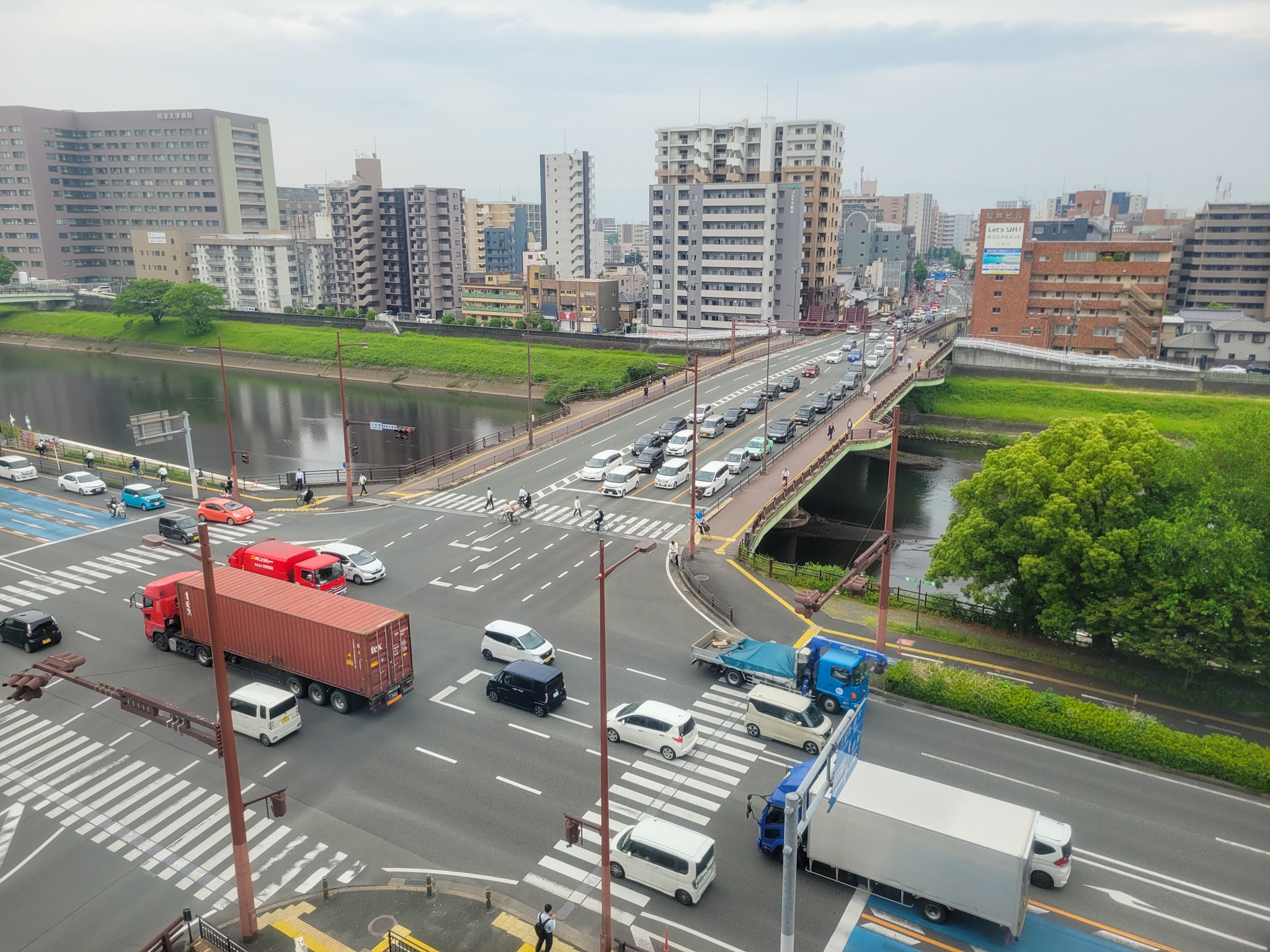 路面電車でほぼ9駅分、約4キロと1時間弱かかりました。