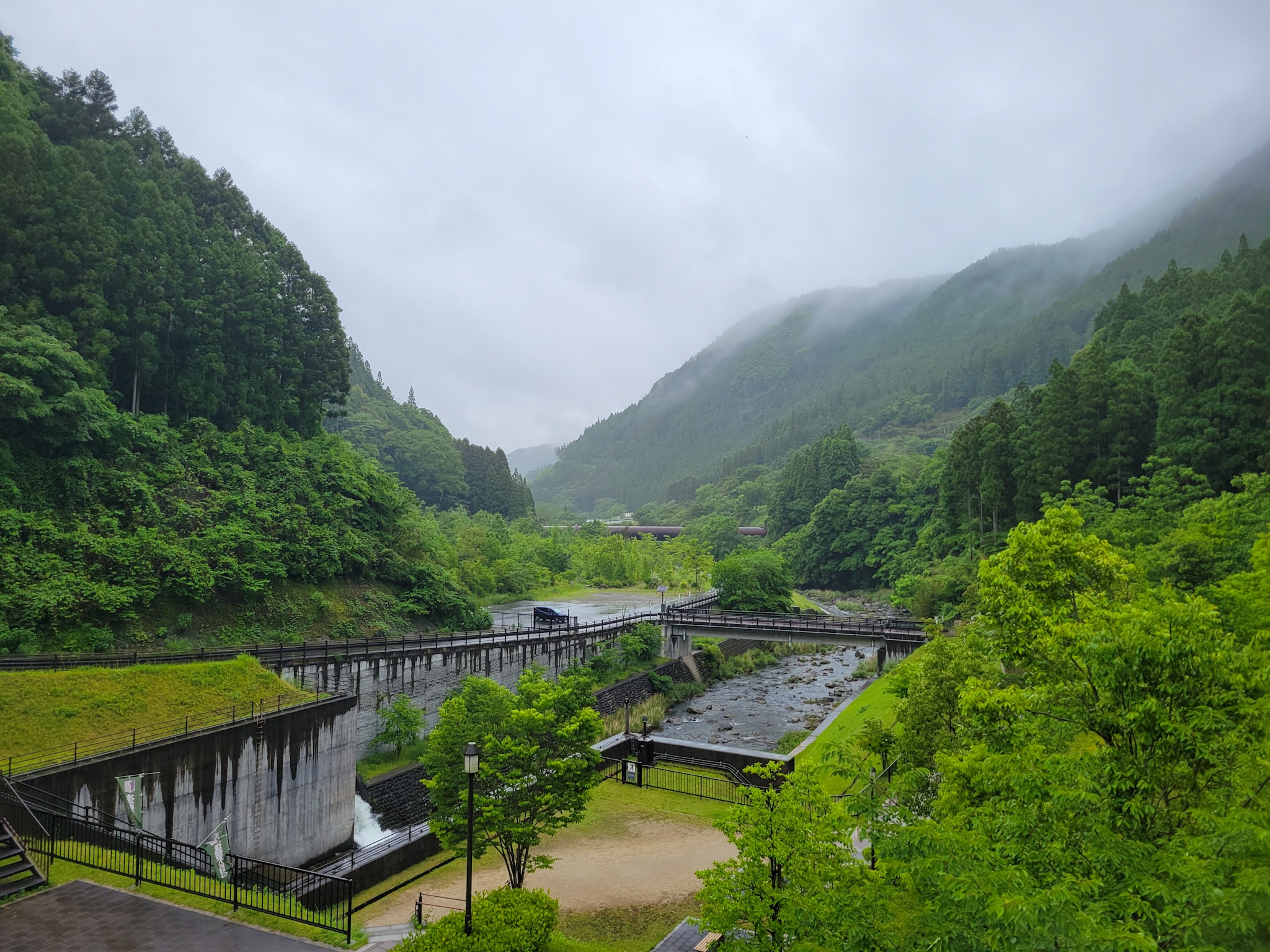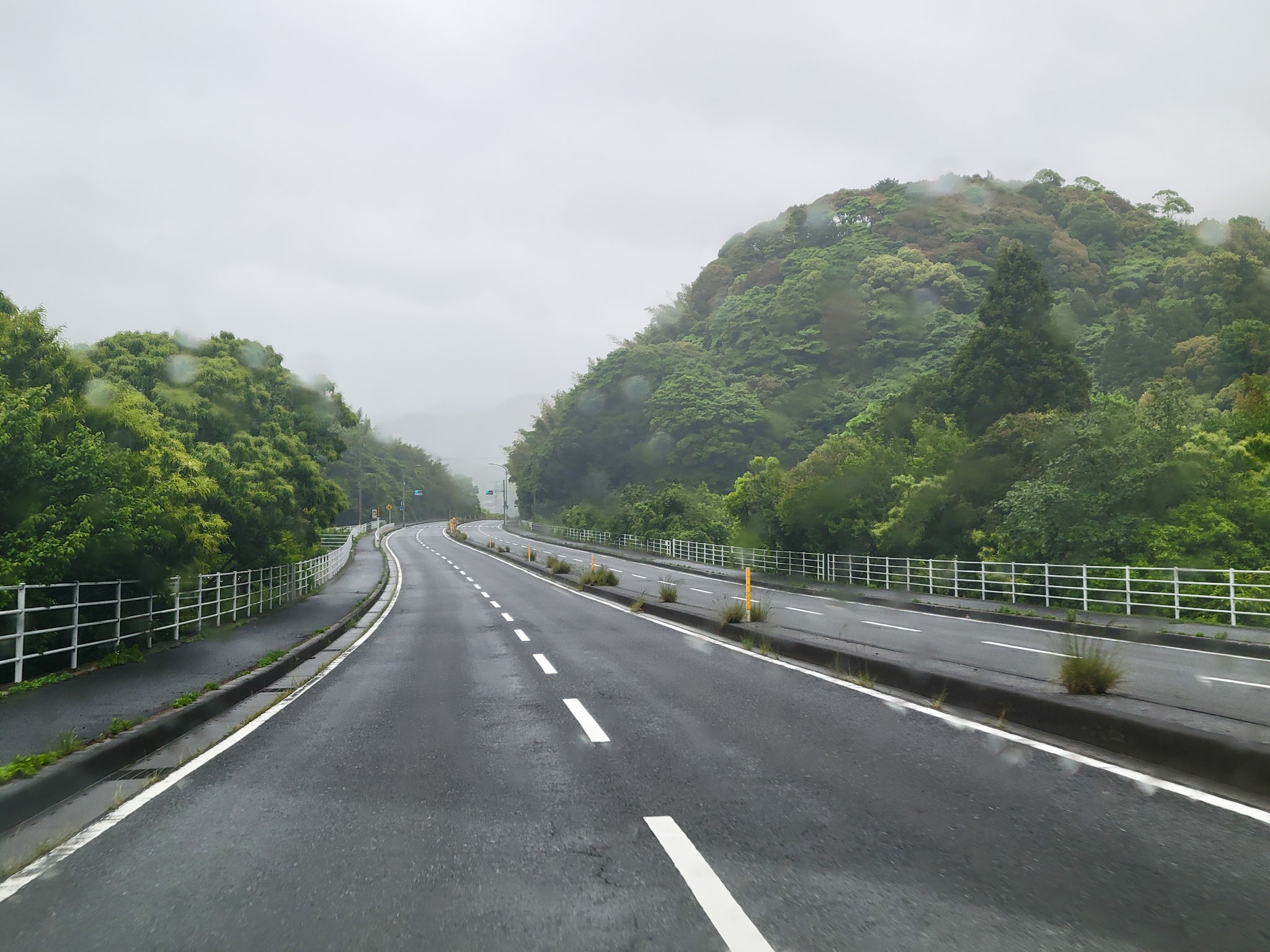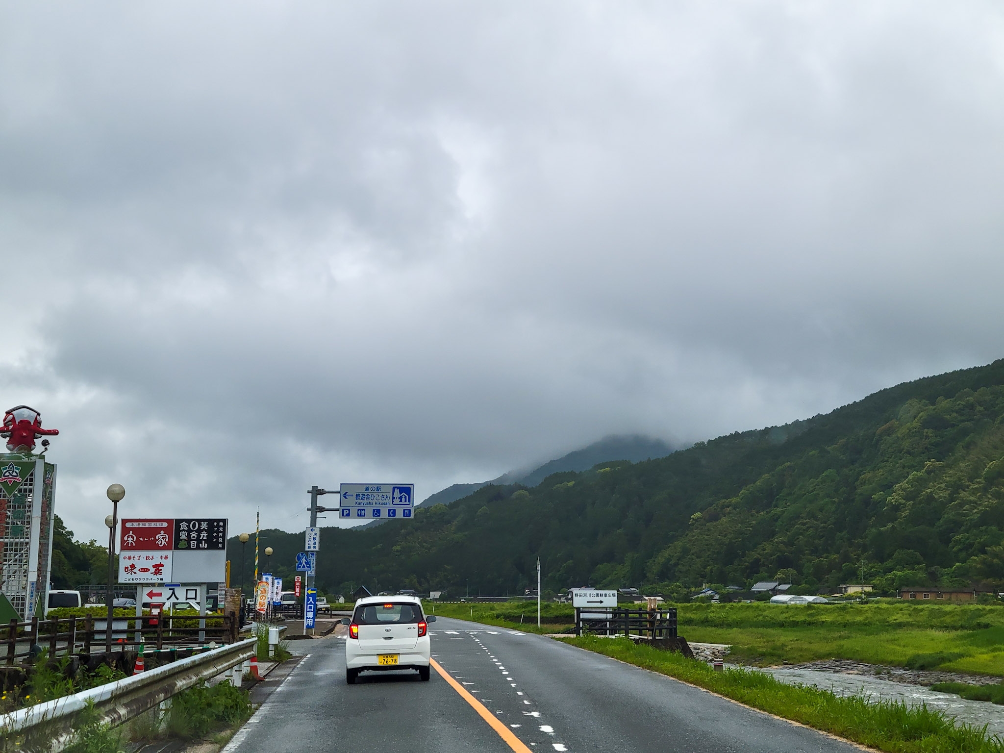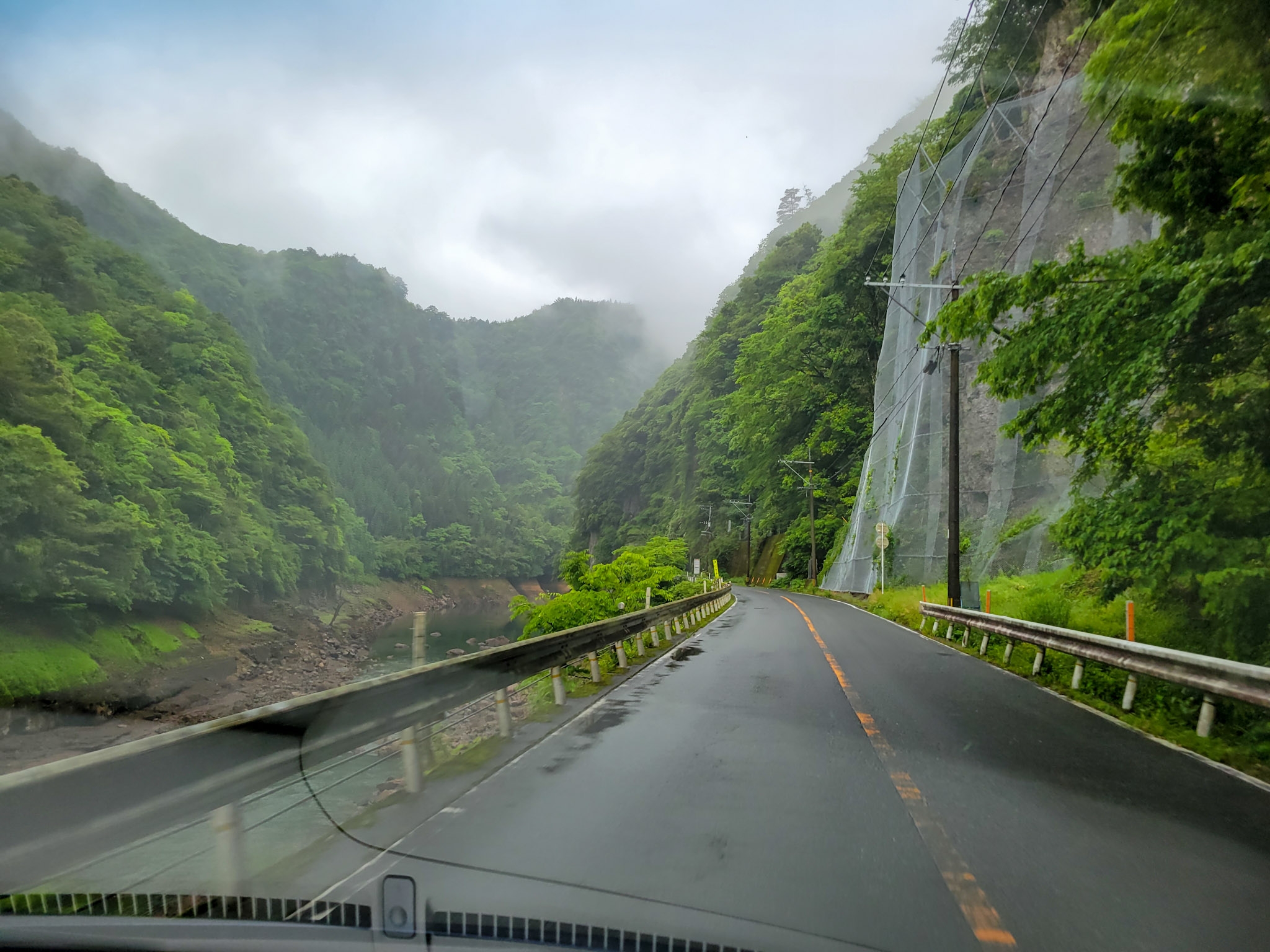 杖立温泉を過ぎたあたりから雨が強くなってきました。