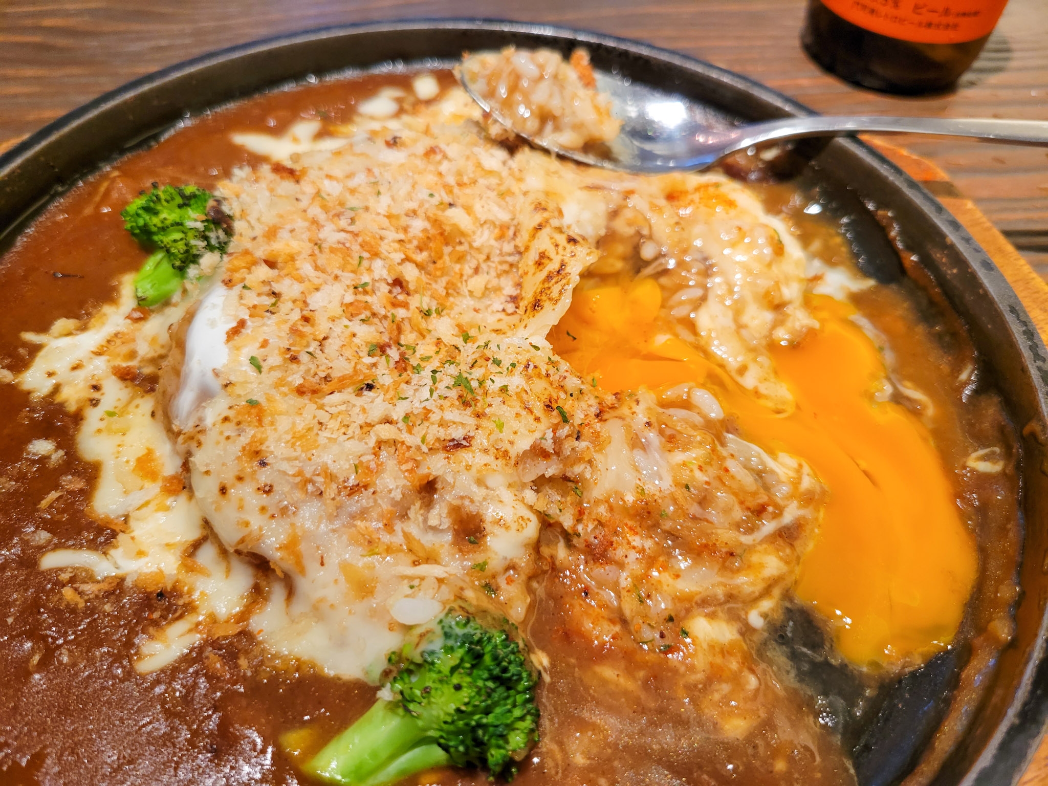 表面はパン粉がカリカリ、とろーりチーズとカレールーがあわさり、