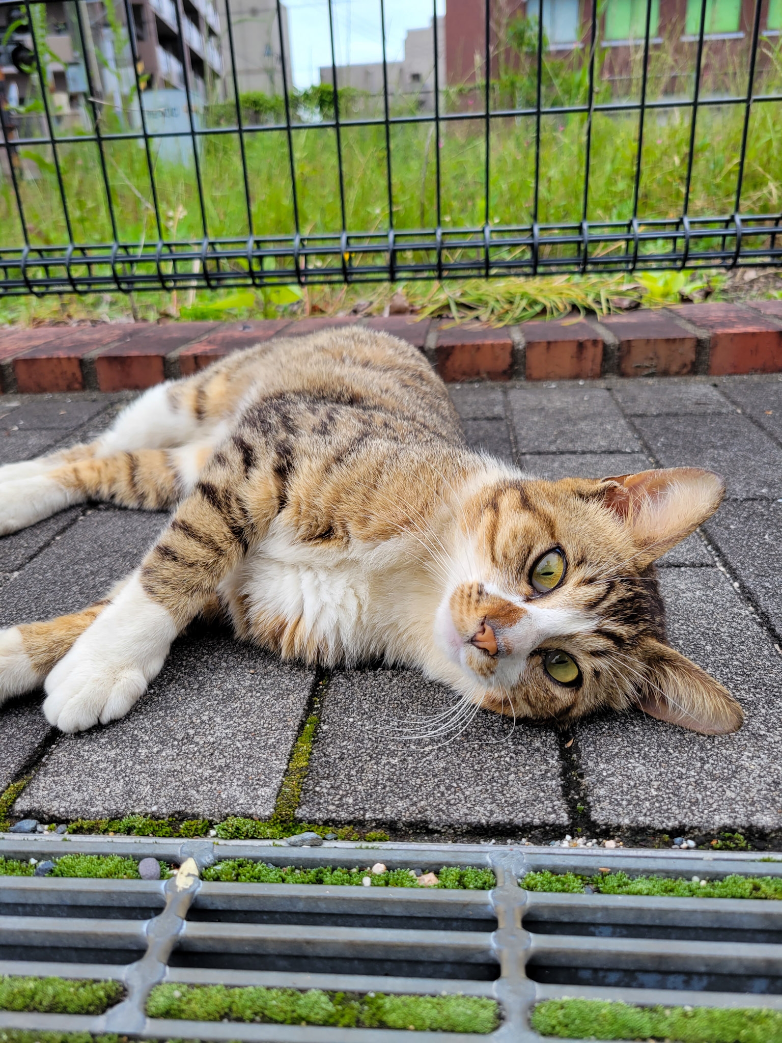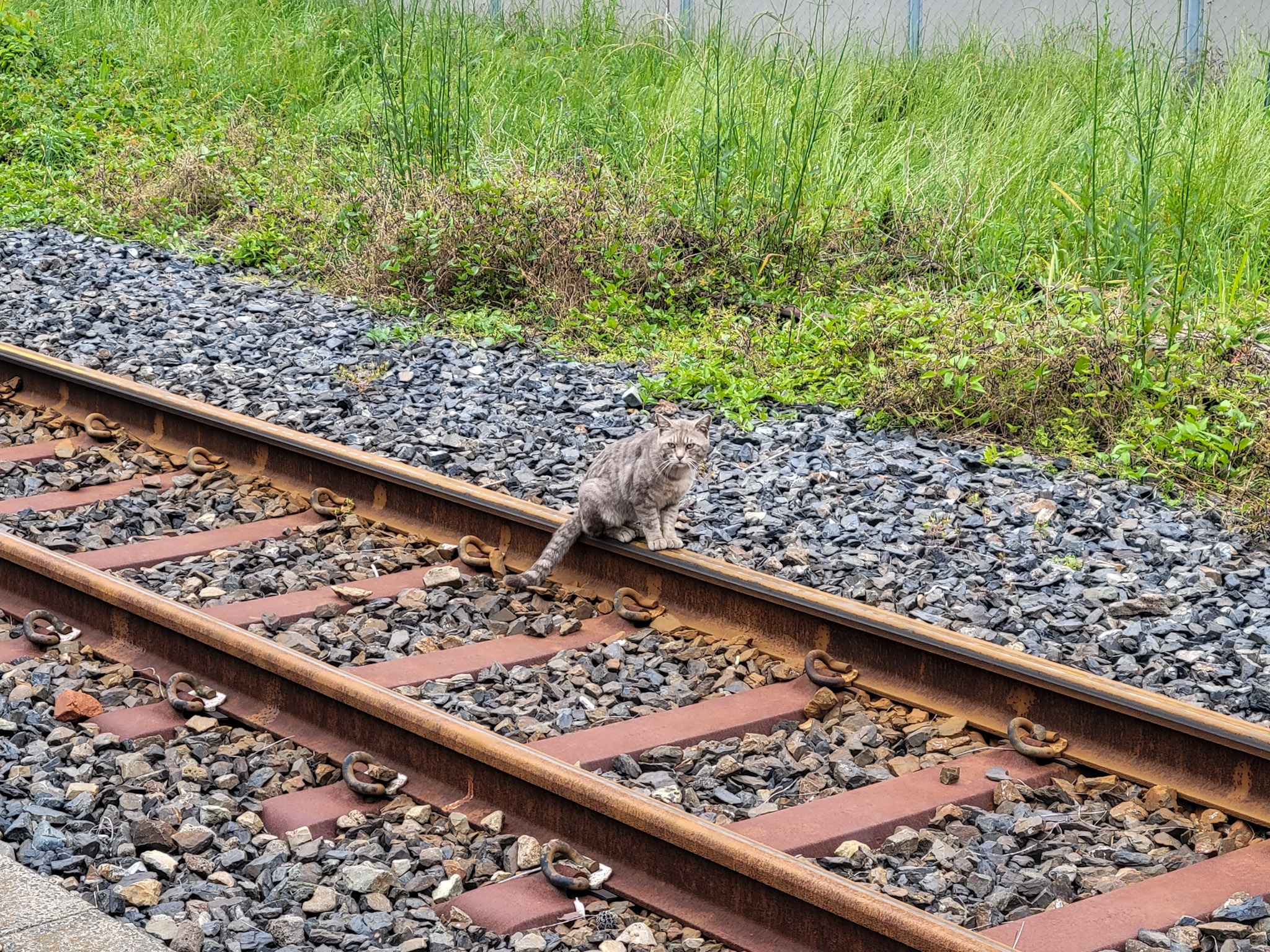 今日は平日なので、列車は通らないので安心して散歩してるようです。