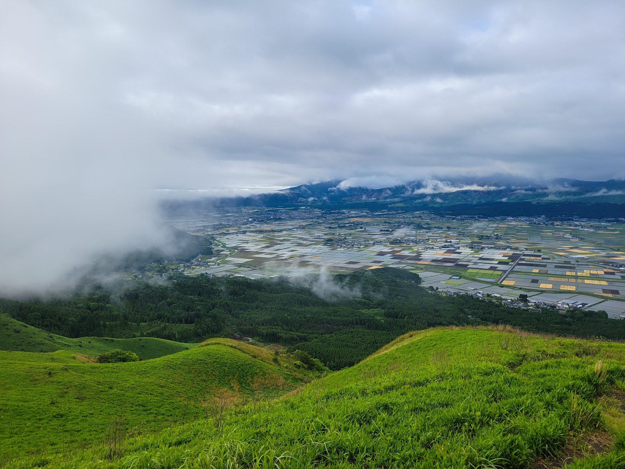 阿蘇五岳は見えないけど、眼下の阿蘇カルデラがよく見えます。