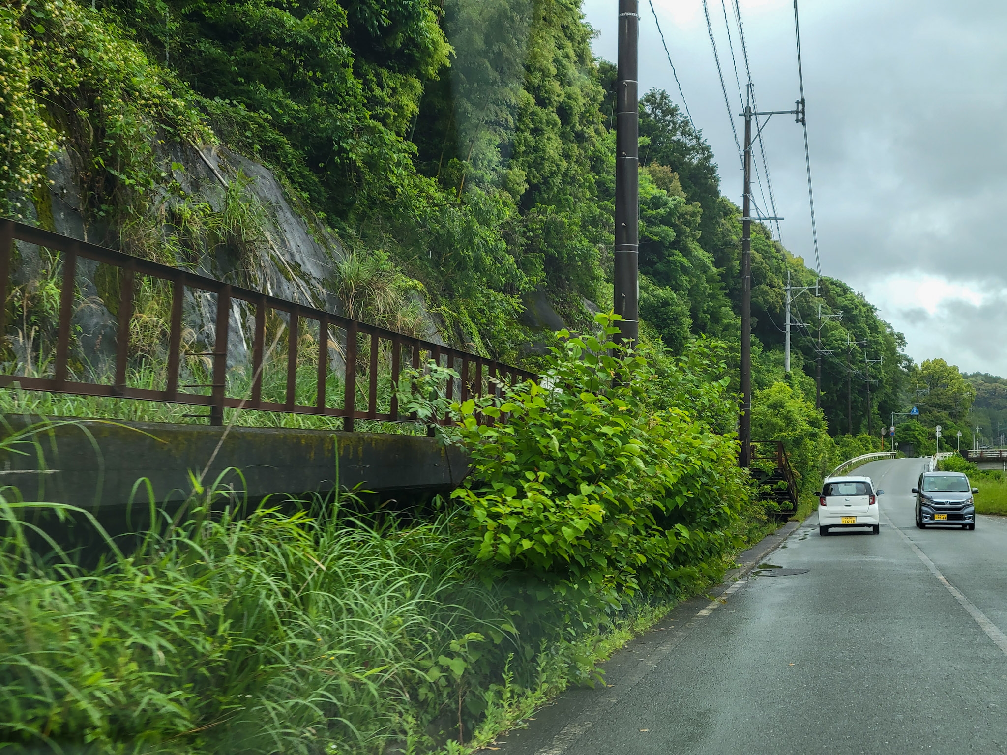 両サイドから山が迫ってきて、渓谷のような場所を走っていきます。