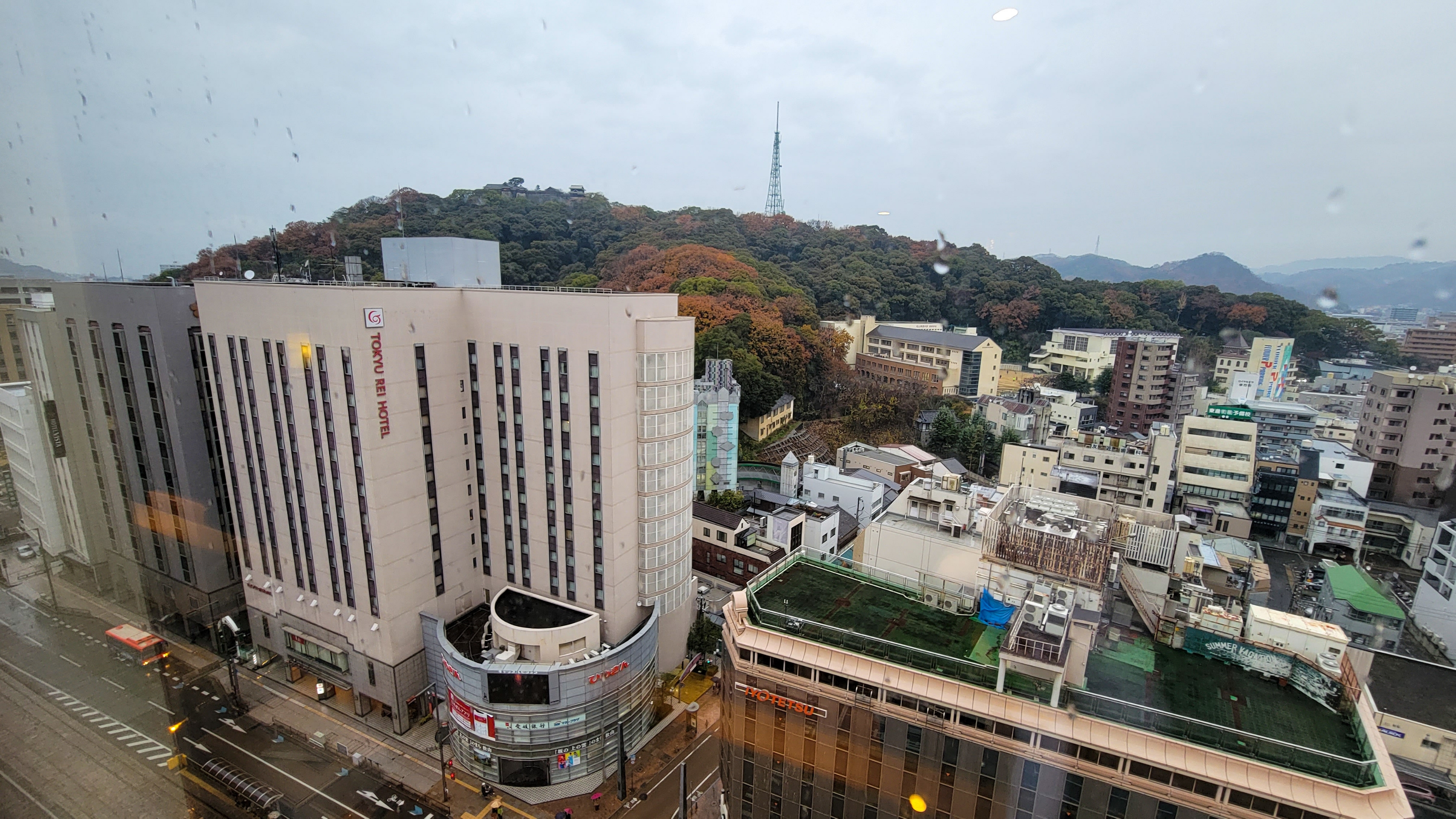 外はまだ雨が降っていますが、カンデオホテルは大街道側のテナントとつながってるので、雨に濡れず戻れます。