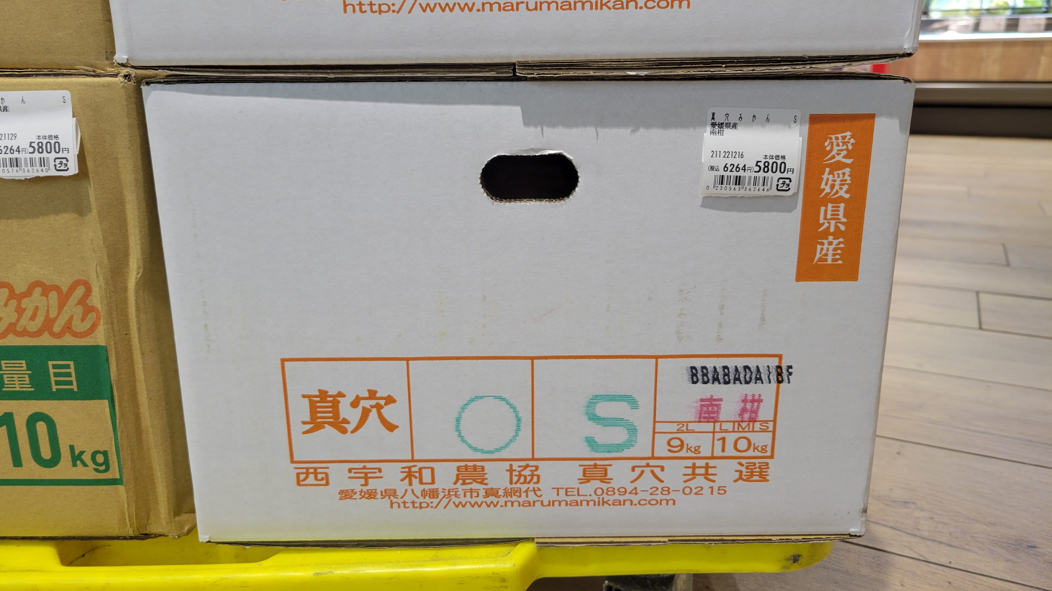 結局、宿近くのスーパーAbcで真穴みかん10kgを約6,000円で購入。5kgは約4,000円なのに比べて、量は倍なのに、値段は1.5倍とかなり値ごろ感あった。