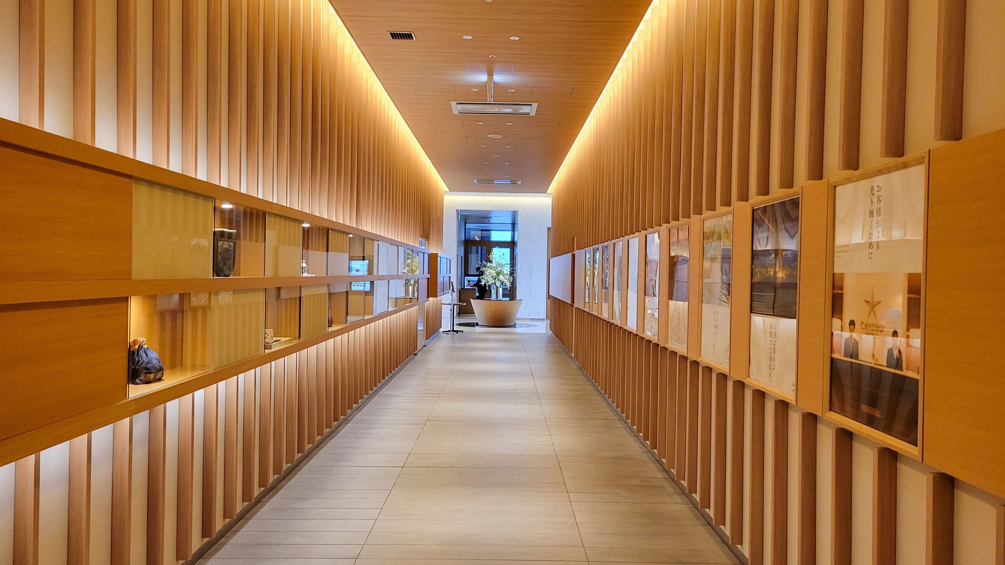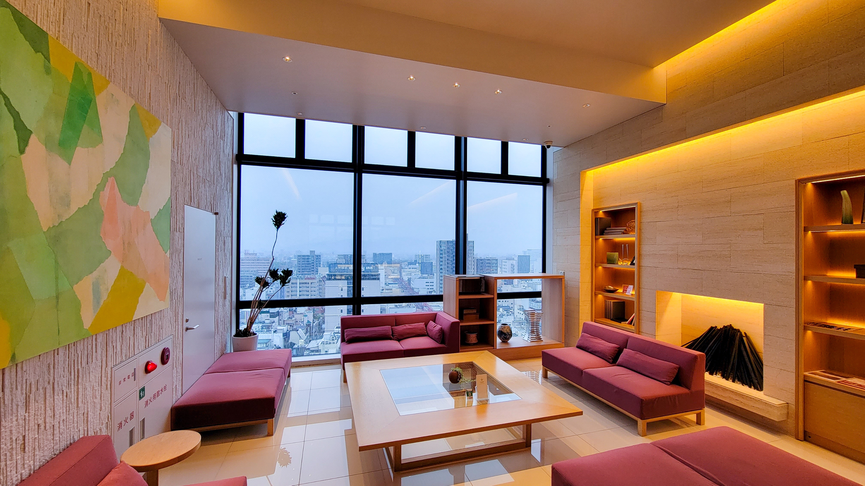 さらに奥(写真では右側)には、夜間にラウンジスペース、朝食会場となる展望レストランがあります。