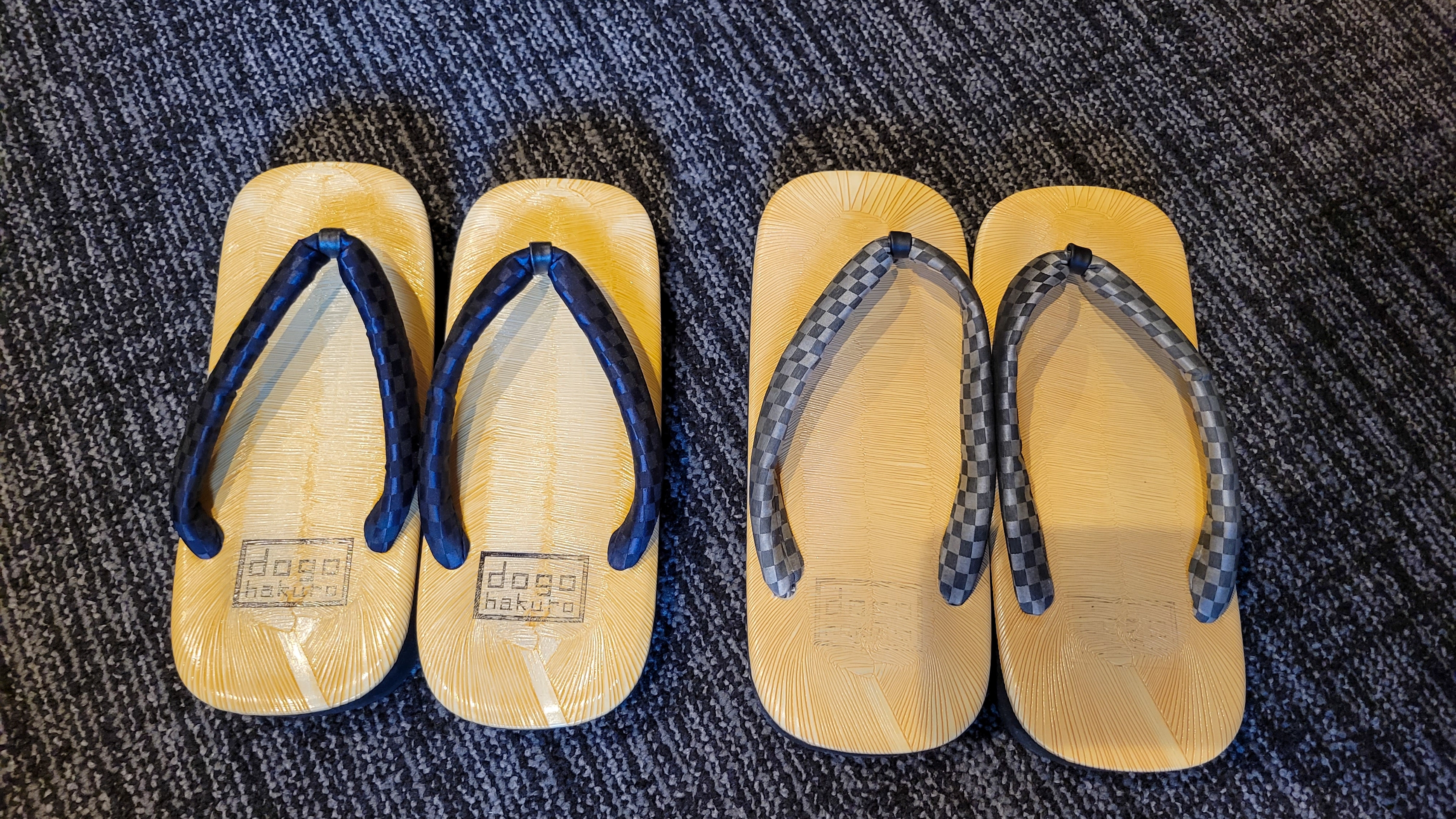 下駄は大小2種類と、使い捨てのスリッパも置いてありました。