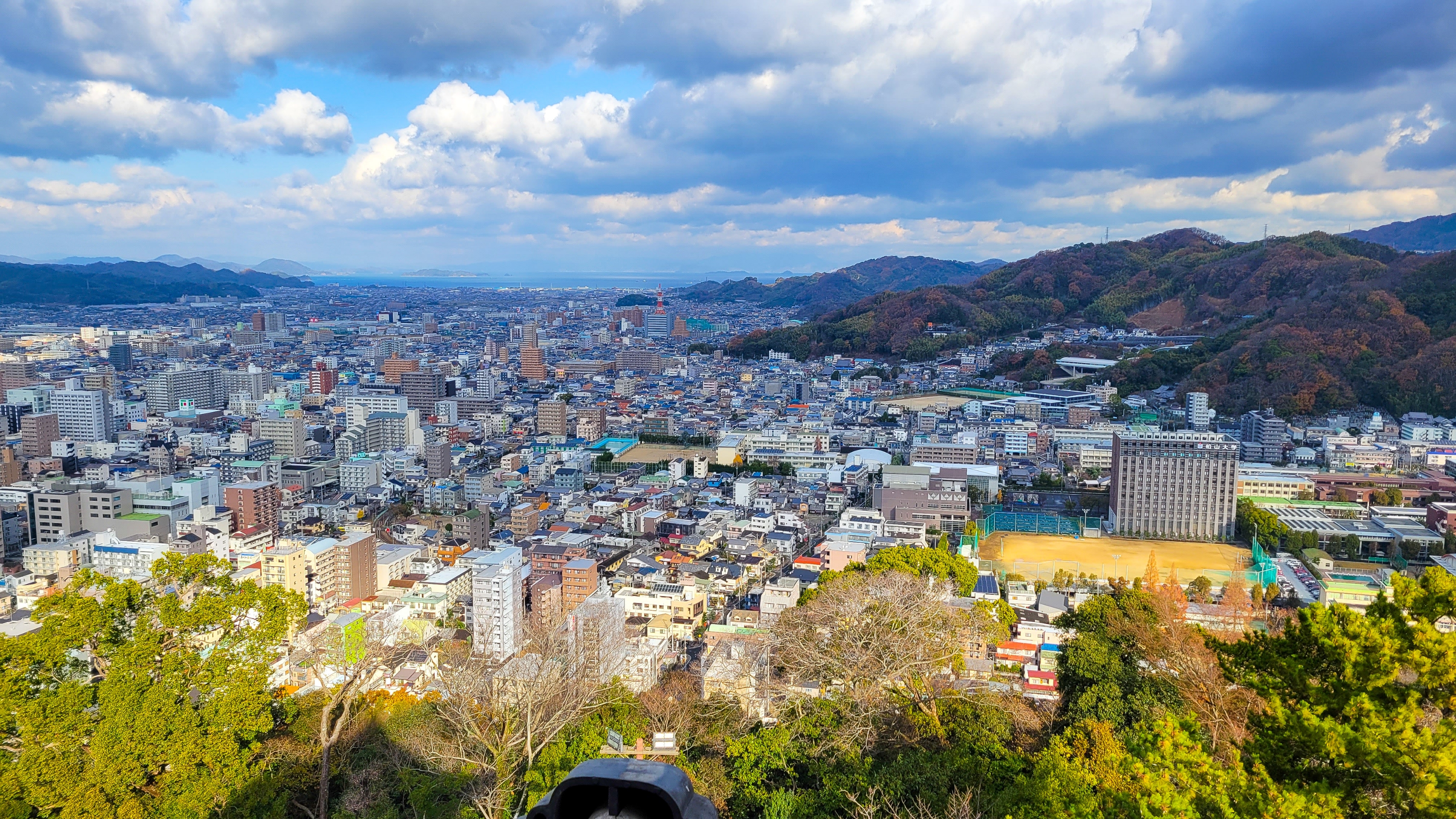 松山は山と海に囲まれた自然豊かな平地にあることが実感できます。人工が増えるのも納得ですね。