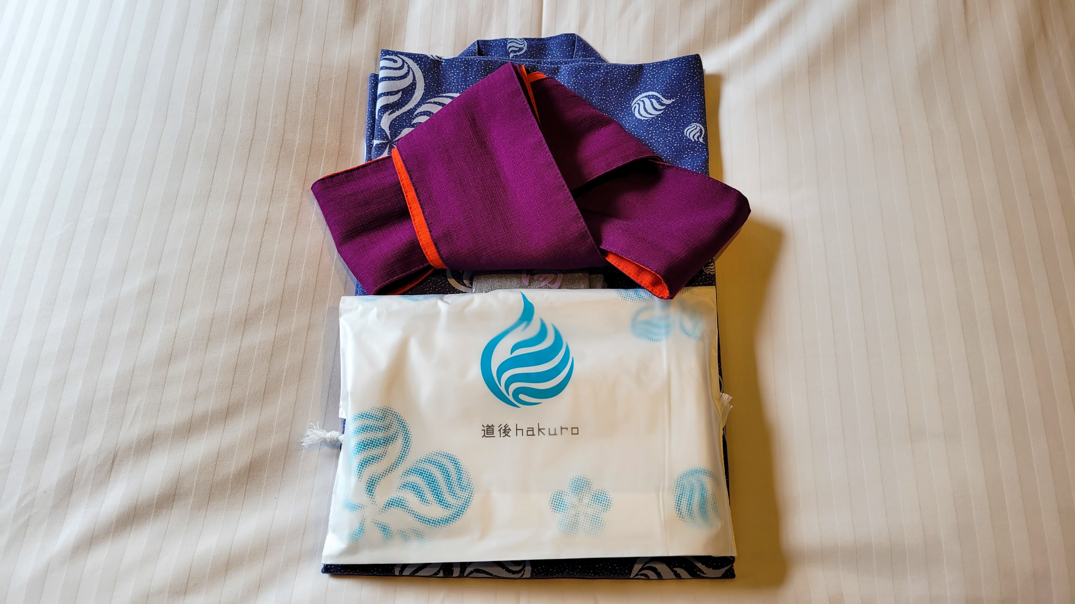 浴衣やタオルをいれるビニールケースが置いてあるのは、温泉ホテルならでは。