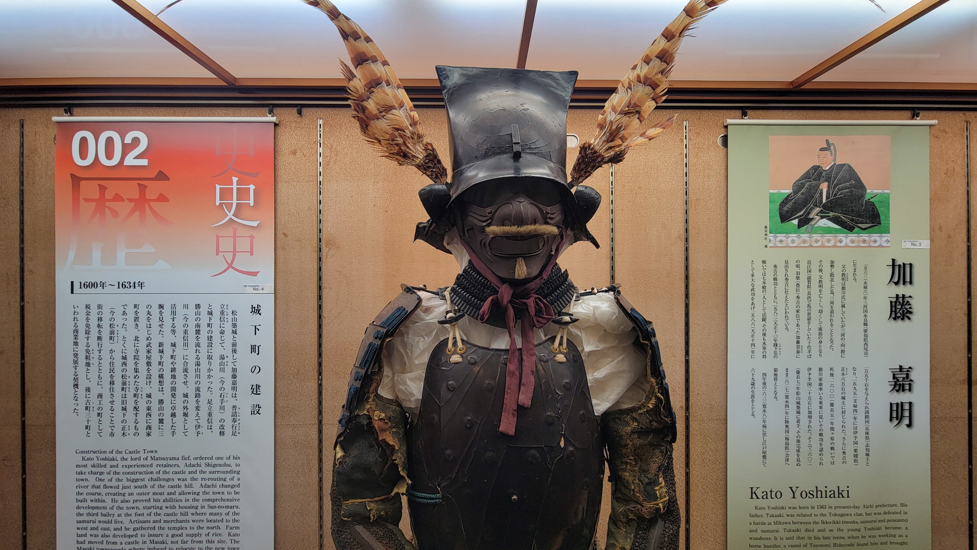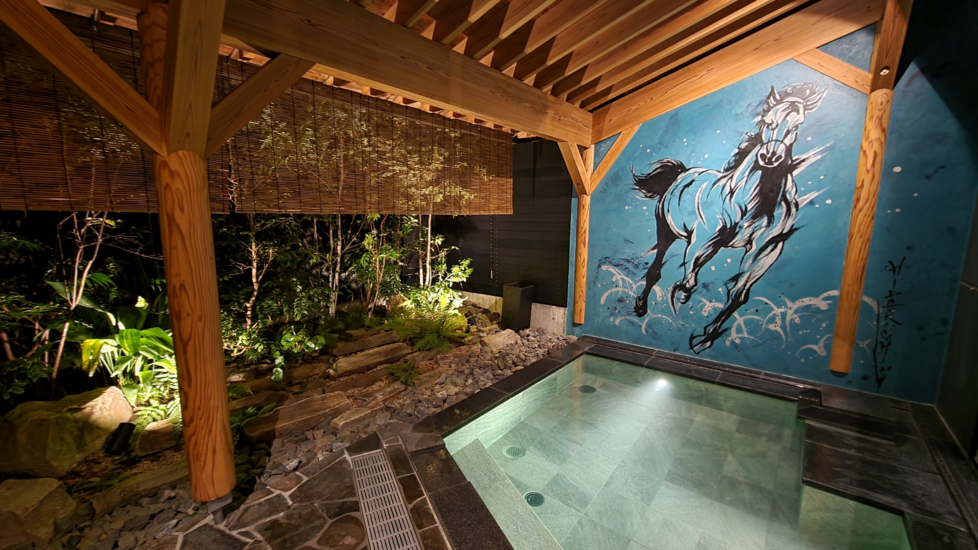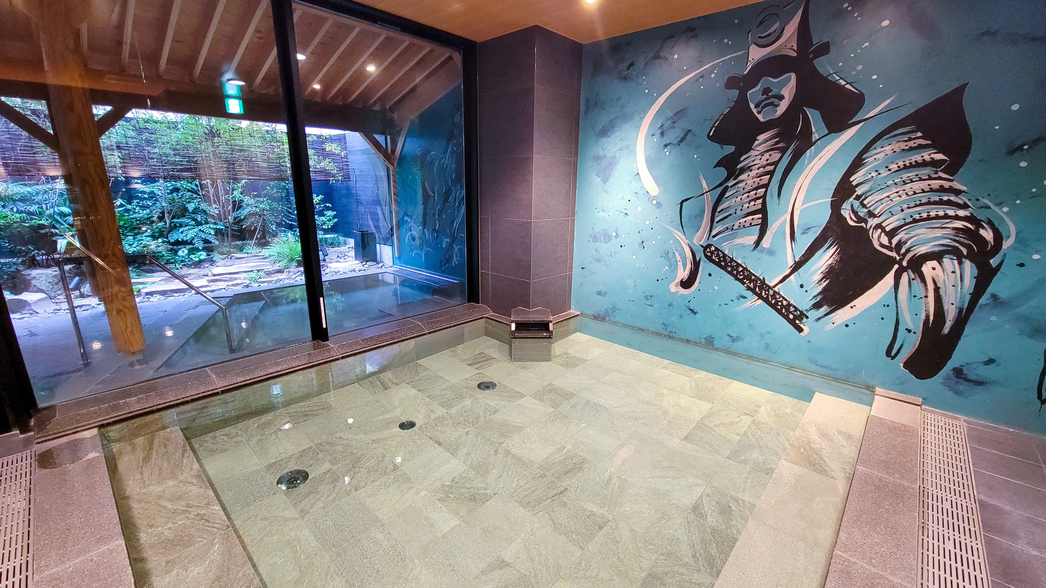 大浴場には、墨絵作家の描いた加藤嘉明が描かれています。