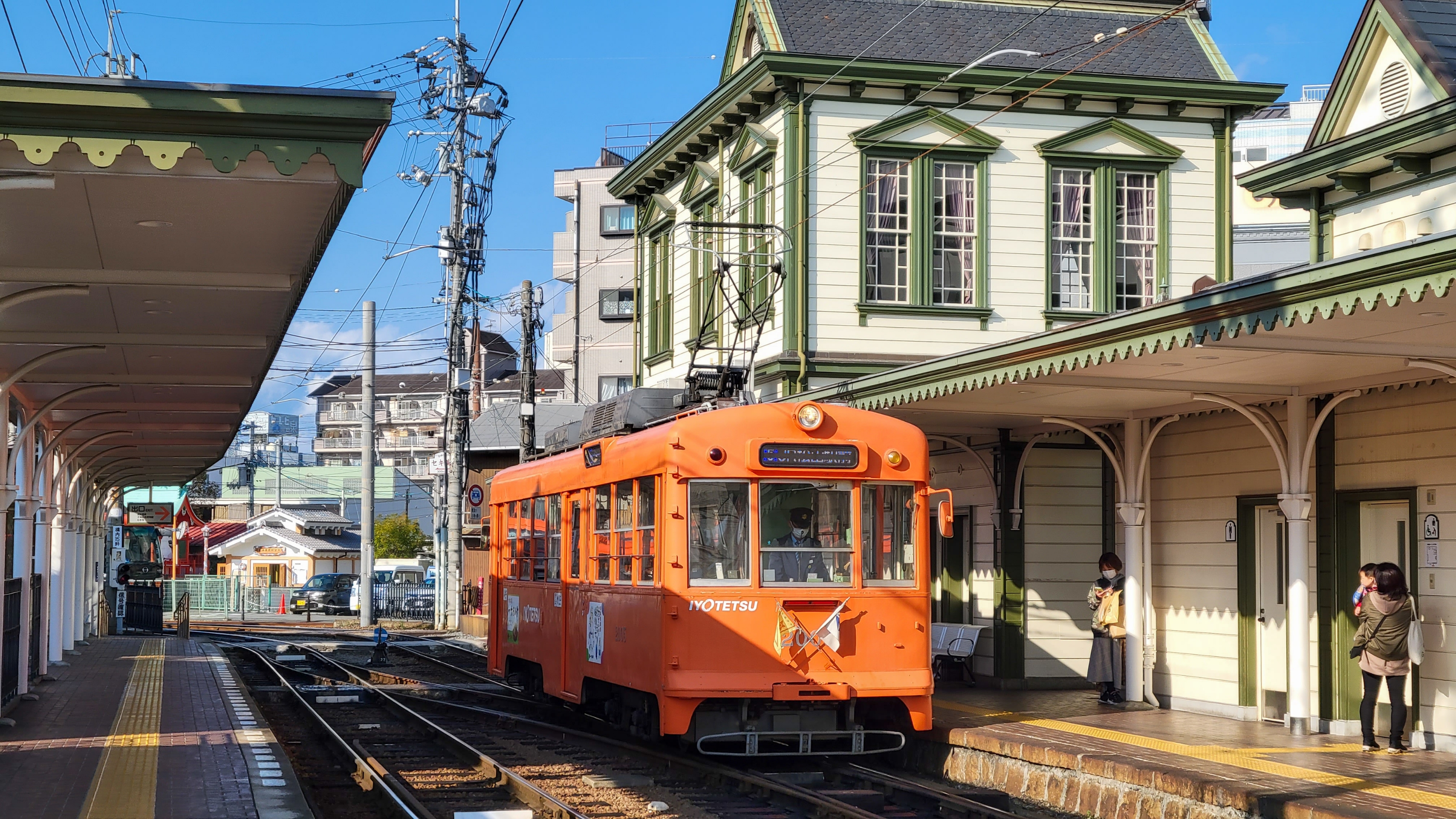 路面電車は半分ぐらい新型に置き換わってますが、この古いタイプはレトロ感ある道後温泉の駅にぴったり。
