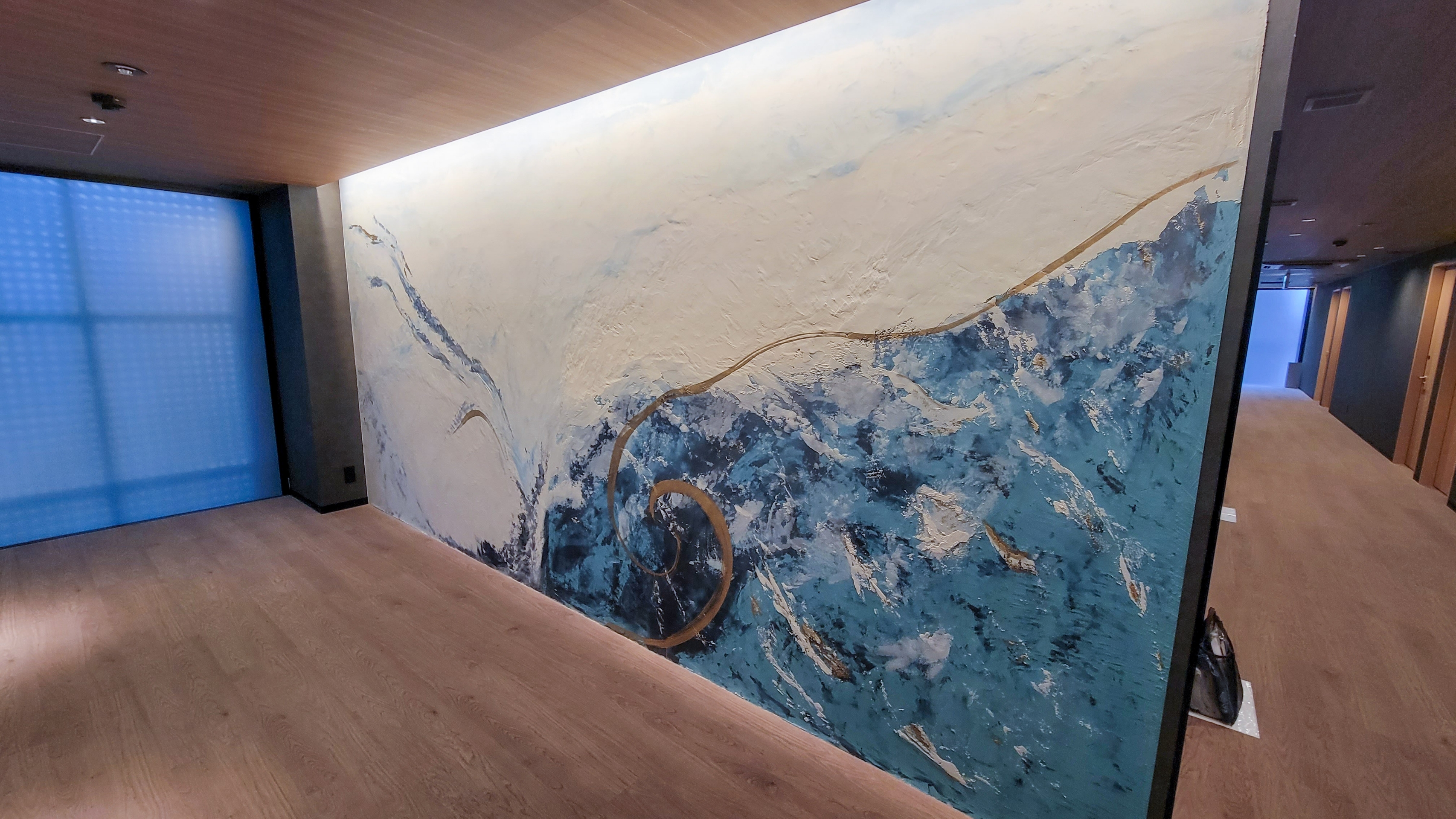 各階には、それぞれテーマカラーがあり、エレベーターホールに異なる壁画が描かれています。