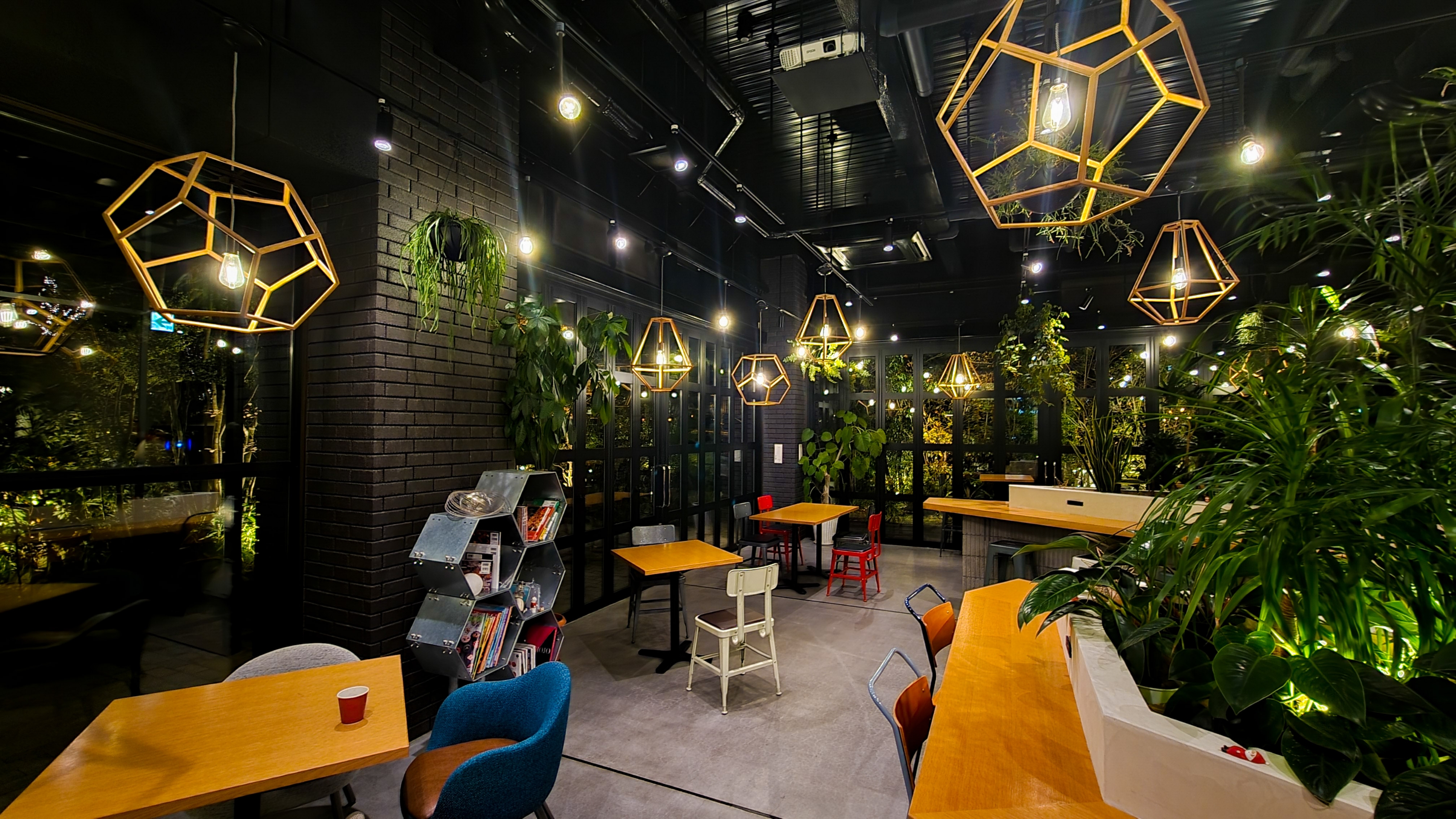 このフリースペースはほんと居心地良かったですね。観葉植物が視線を遮っているので、適度にプライバシー感があって良かったです。